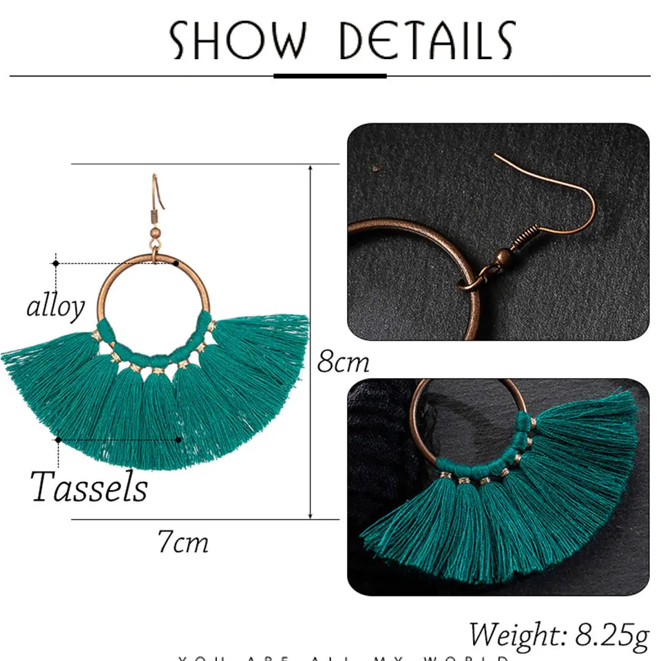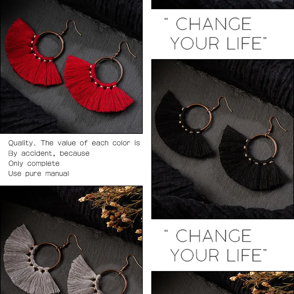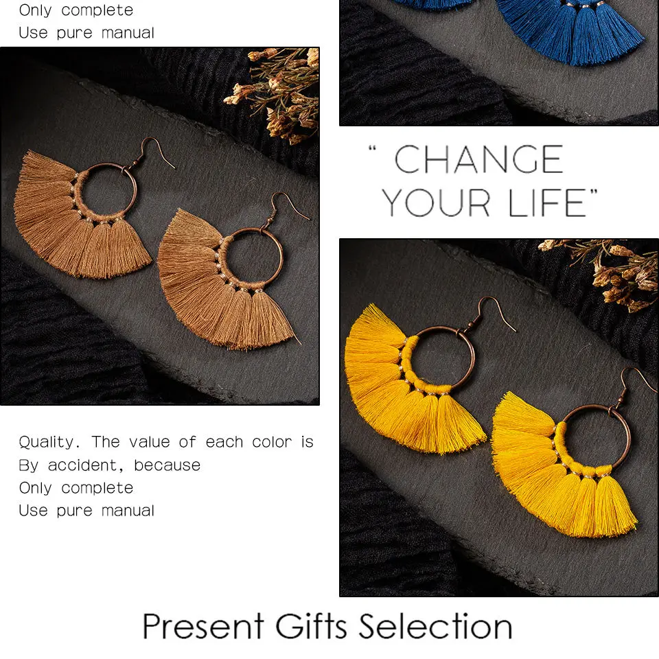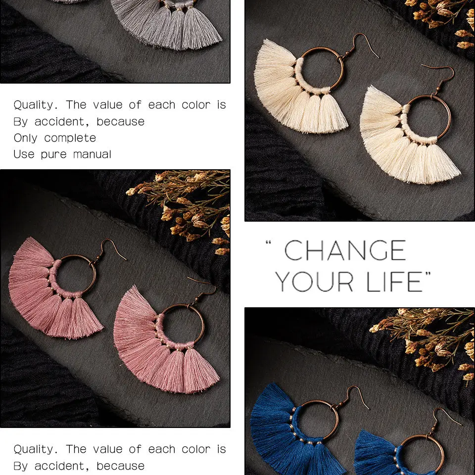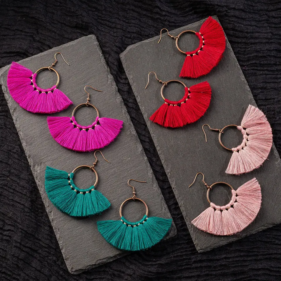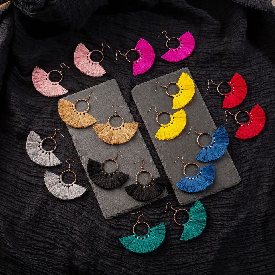 Женские серьги-подвески в стиле бохо, разноцветные висячие серьги в этническом стиле с хлопковой кисточкой, 2019
