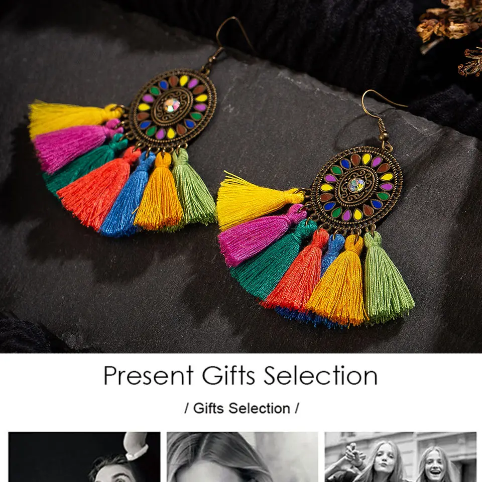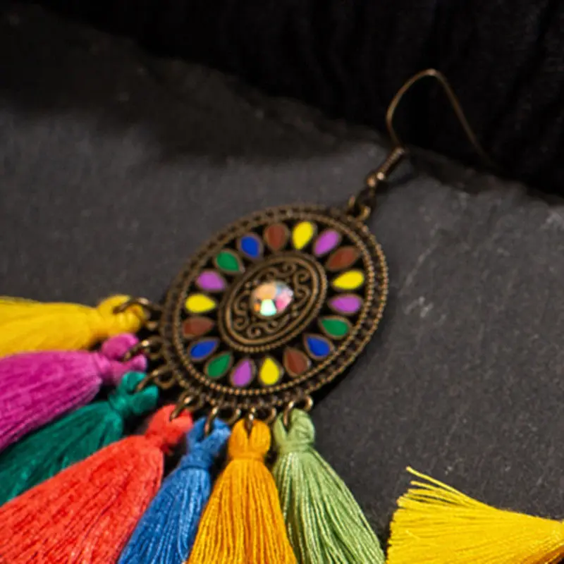 Роскошные Этнические разноцветные хлопковые висячие серьги с кисточками в стиле бохо для женщин, 2019, свадебные очаровательные украшения, ювелирные аксессуары