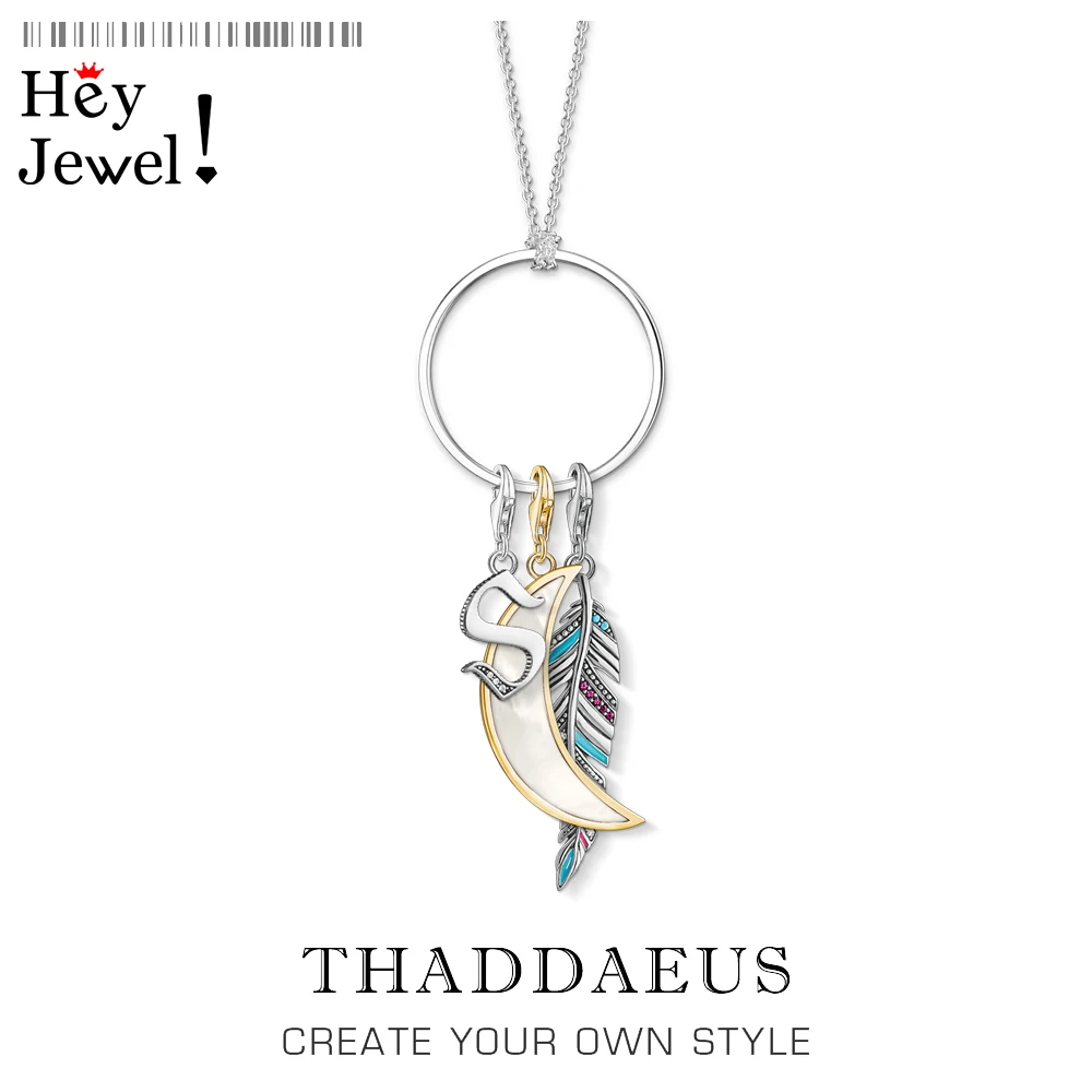 Ожерелье с подвеской в виде Луны и пера, модное очаровательное богемное ювелирное изделие в европейском стиле из серебра 2020 пробы, Подарочная бижутерия для женщин и девушек, 925