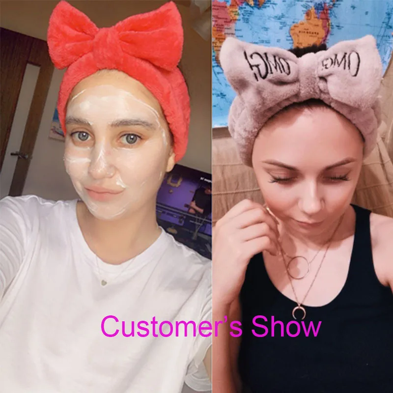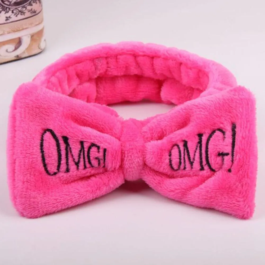 Мягкие флисовые повязки женские с бантом с надписью OMG