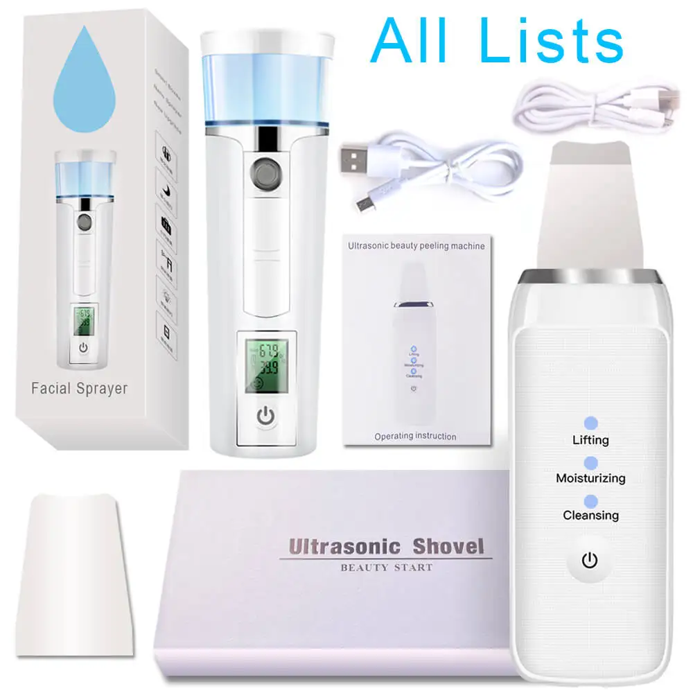 Устройство для очистки лица, ультразвуковой скребок для кожи, лифтинг лица, нано-распылитель тумана, спа, небулайзер, уход, паровой анализатор влажности