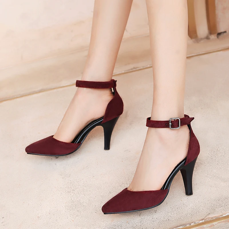 Женские туфли-лодочки с острым носком, на высоком каблуке, с пряжкой, лето 2020