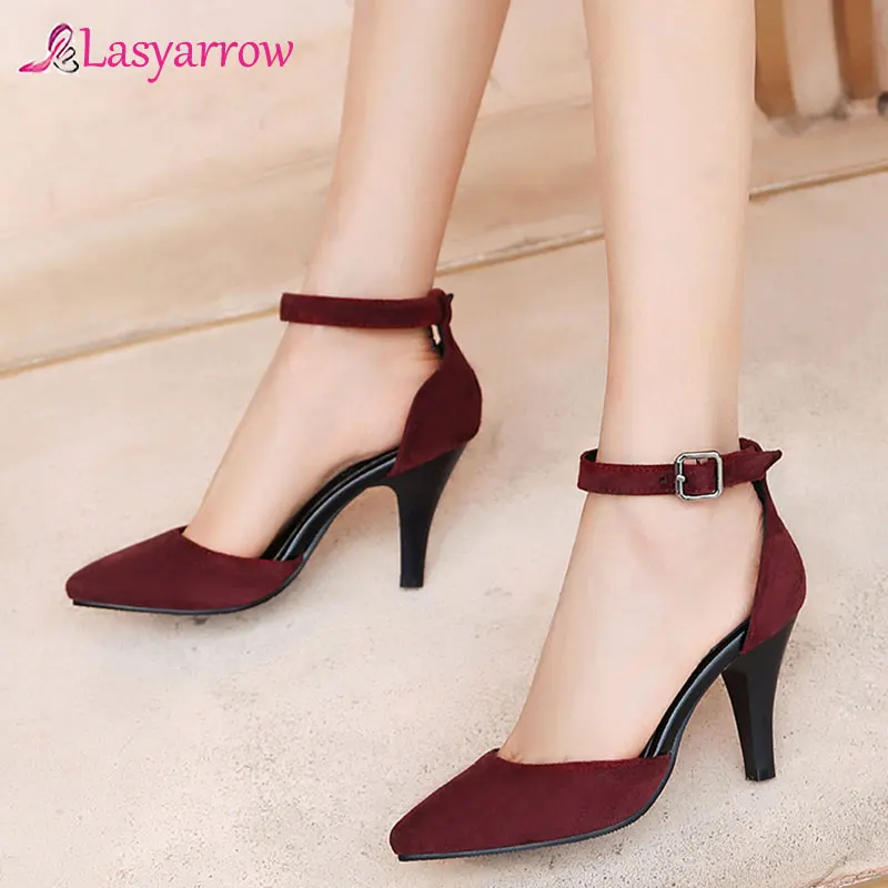 Lasyarrow/2020 Новое поступление; Туфли-лодочки с острым носком; Женская обувь; Простые Летние туфли с пряжкой; Элегантные вечерние свадебные туфли; Туфли на высоком каблуке
