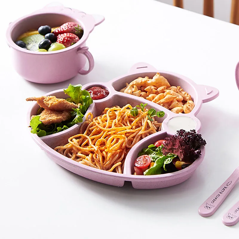 Набор детской посуды, 3 шт.компл., с милой мультяшной кошкой, ложкой и вилкой, MBG0463