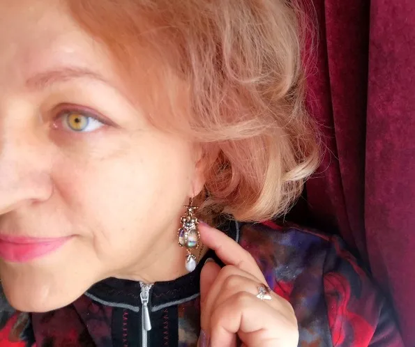 Очень красивые серьги! Тяжеловаты, но не критично, у другой девушки в отзыве на такие же зеленые тоже видела, что для неё не тяжёлые, может, и правда, в этих материал полегче? Единственное, не очень понятно, куда их носить, думаю, только на выход, у меня вечернее платье такого же оттенка.