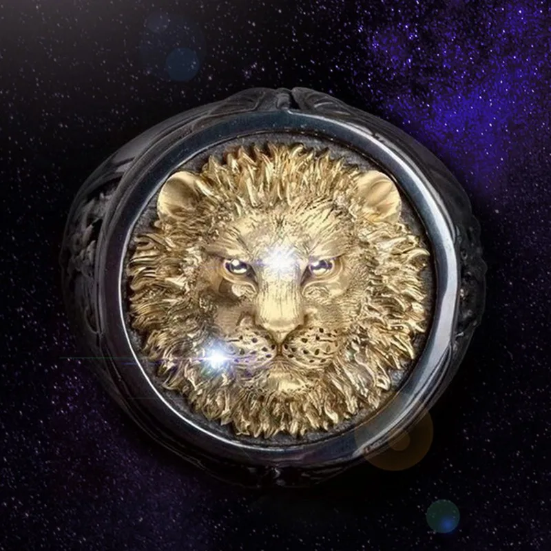 Мужское Винтажное кольцо Лев в стиле панк-рок
