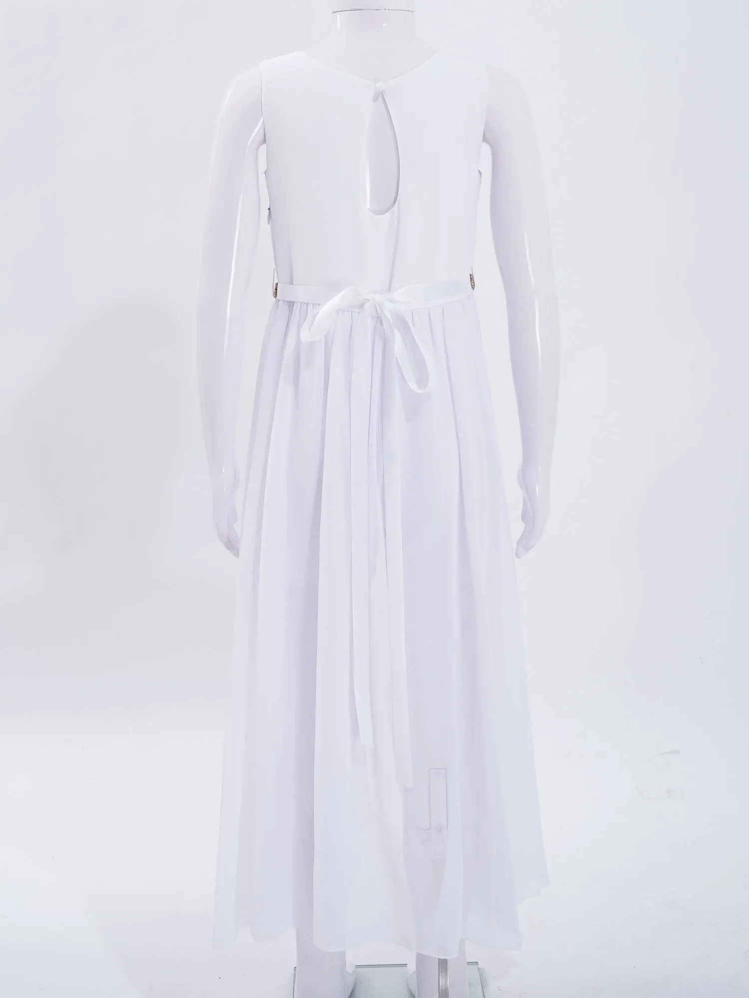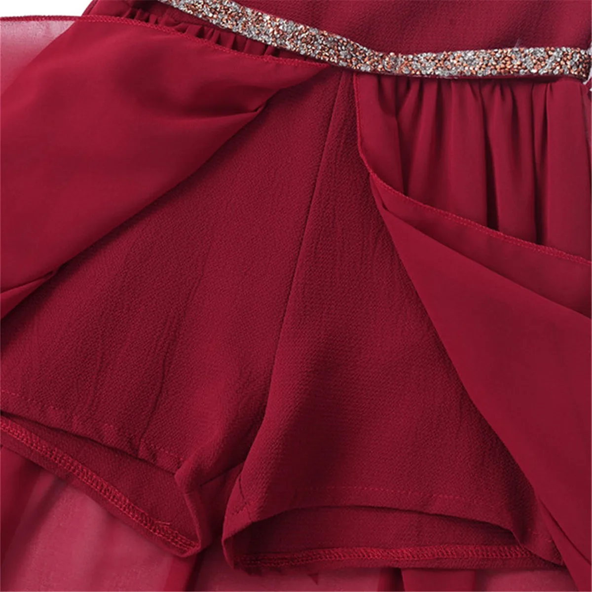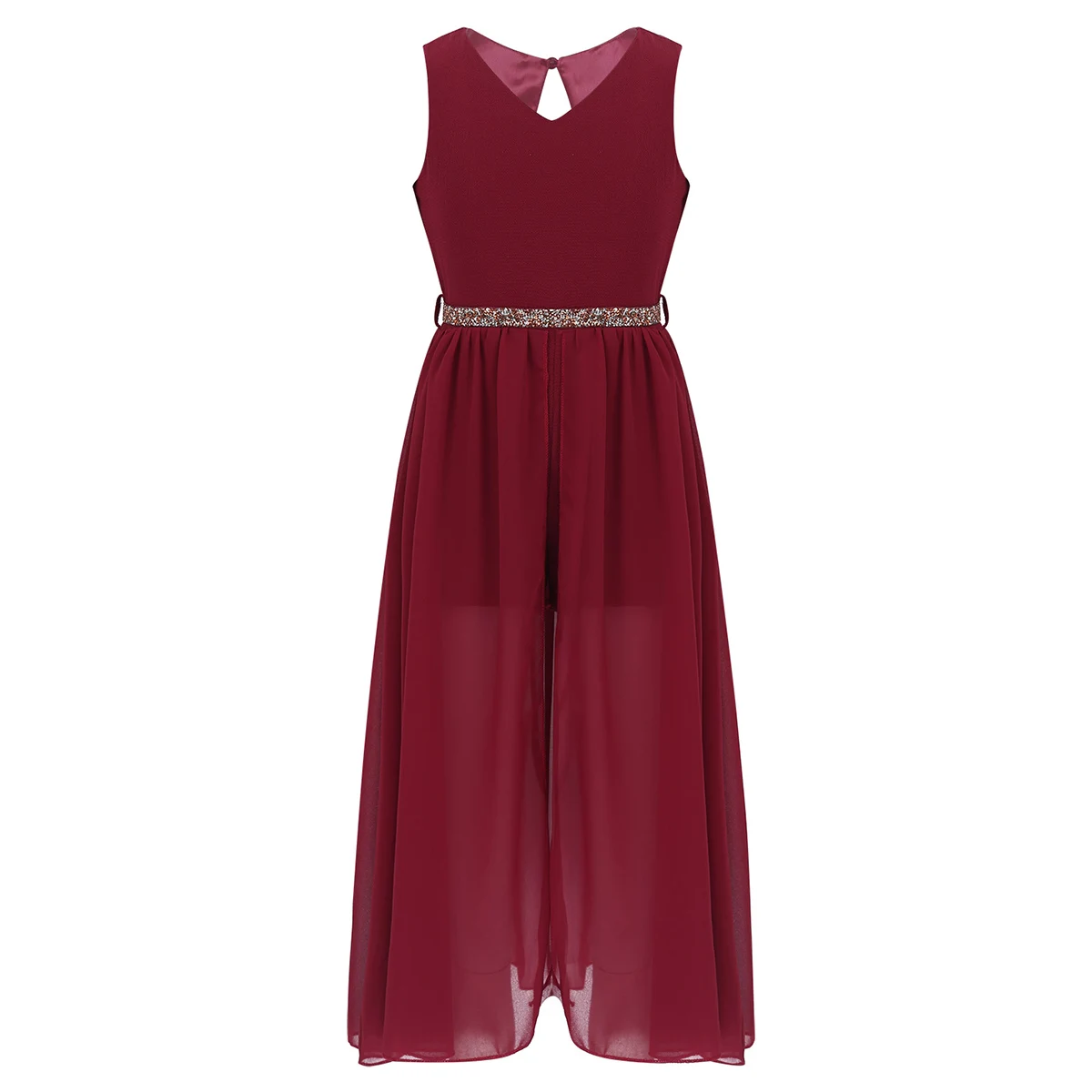 Особенности:Платье-комбинезон изготовлено из полиэстера и шифона, ручная стирка.Таблица размеров означает возраст для девочек, но только для общего руководства.Без рукавов, с v-образным вырезом и застежкой на пуговицы; Лиф с атласной подкладкой для комфортного ношения. Замочная скважина сзади. Скрытая застежка-молния сбоку.1 слой Макси-длины с шифоновым наложением крепится вокруг талии. Поставляется с Стразы ремень для завершения установки. В комплект входит: Красивое и стильное платье для вашей девочки.Идеально подходит для школьных танцев, дней рождения, праздников, фотосессий, официальных мероприятий или других особых случаев.
