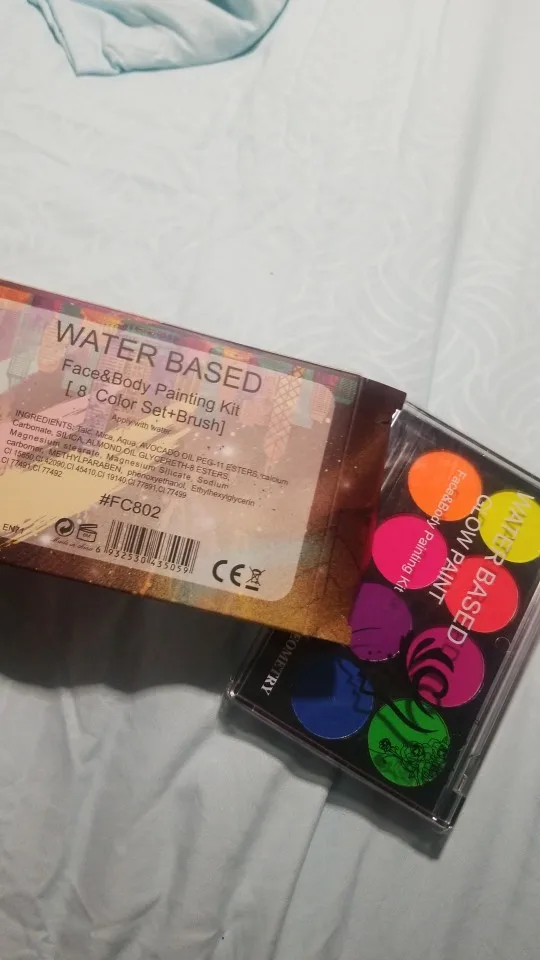 1. Не особо быстро пришла посылка. 2. От палетки пахнет чем то неприятным, но терпимо. 3. Сначала не знала, как наносить, оказывается, нужно было смочить. 4. Цвета яркие. На лицо пока не наносила. -4/5