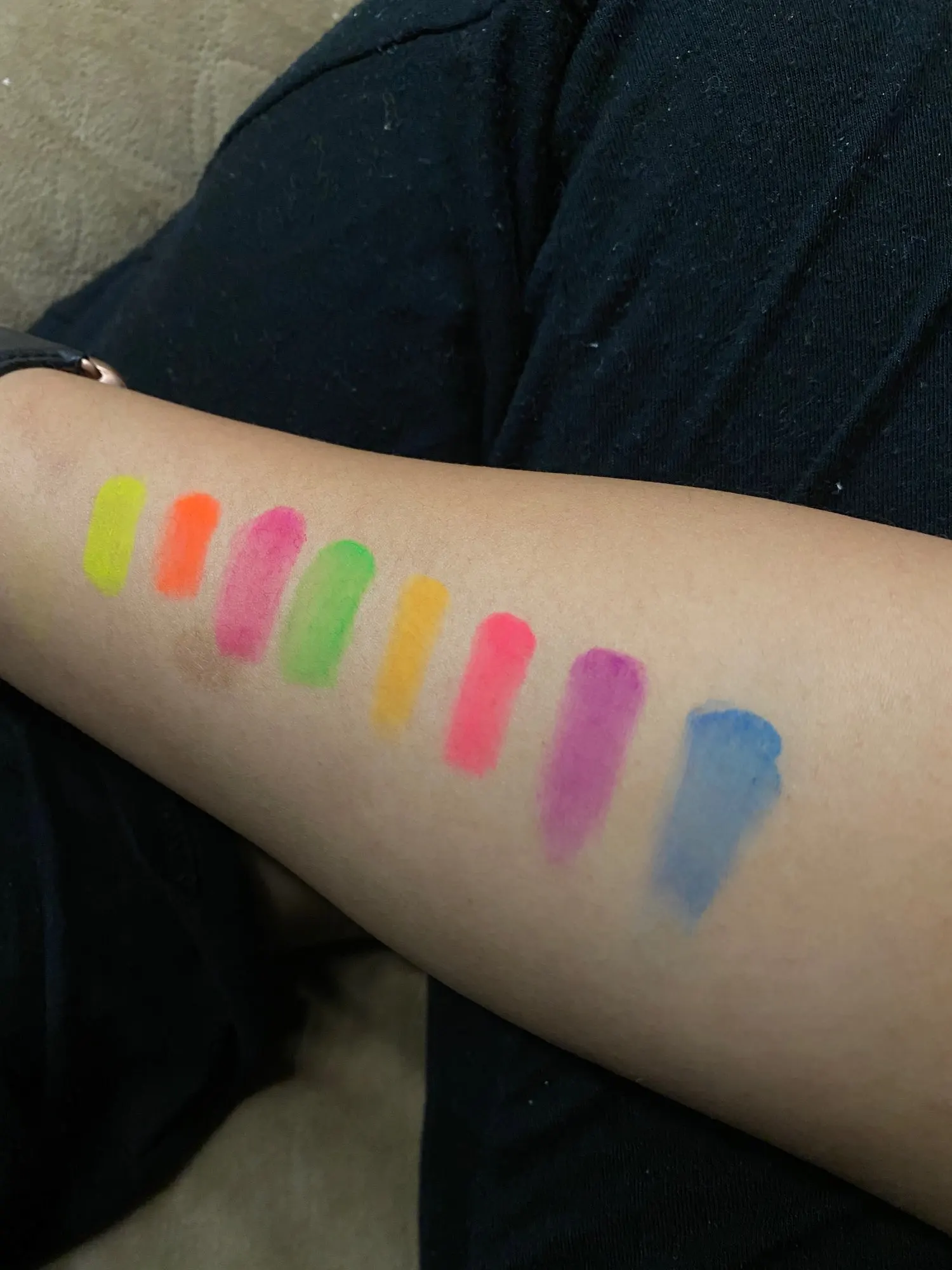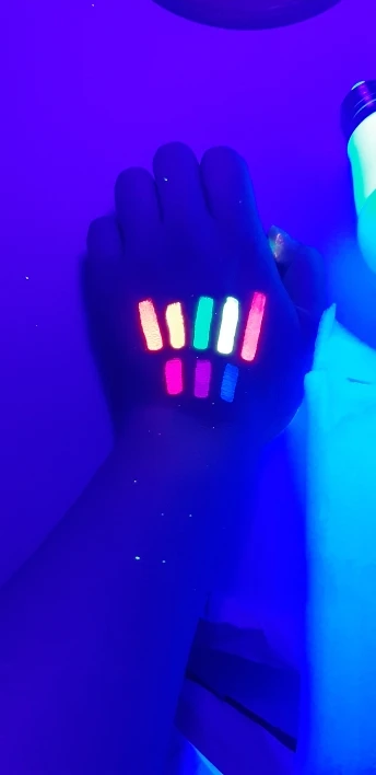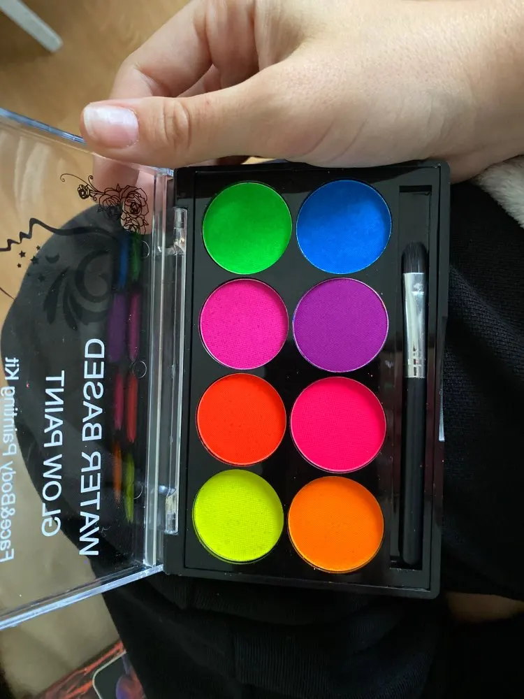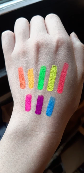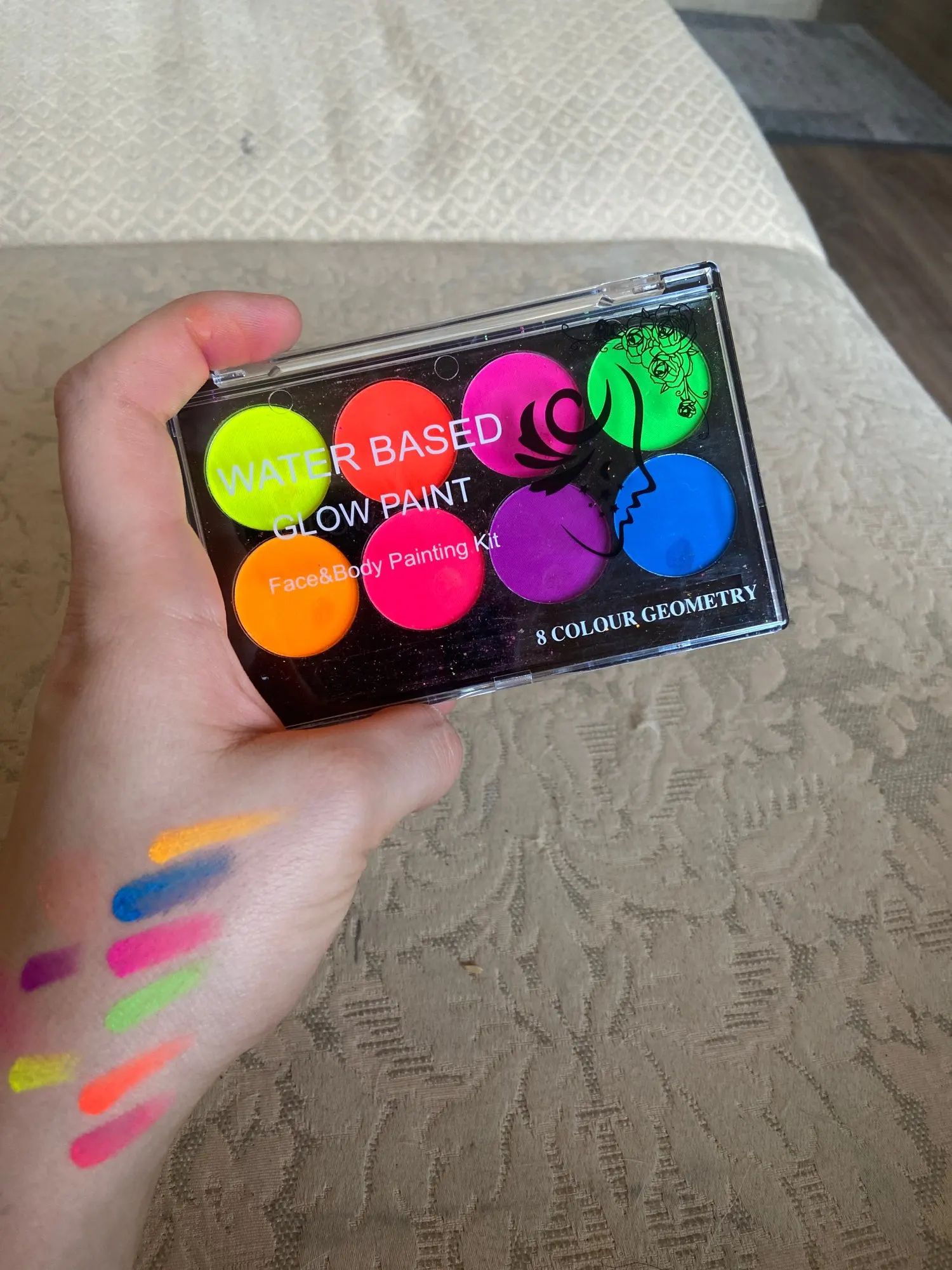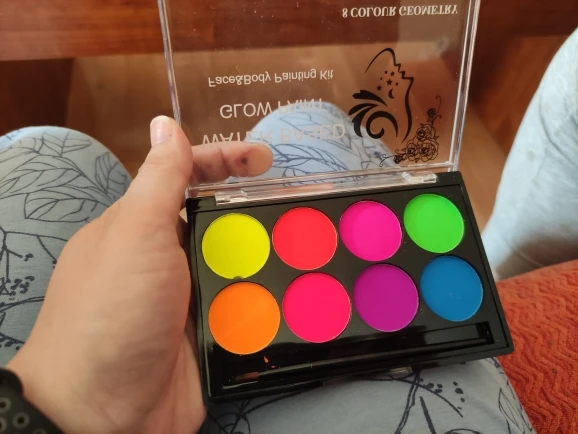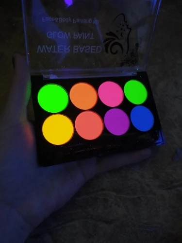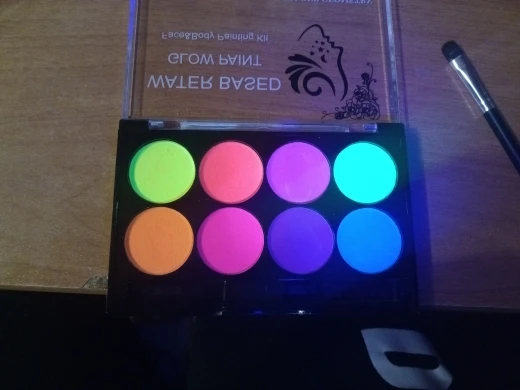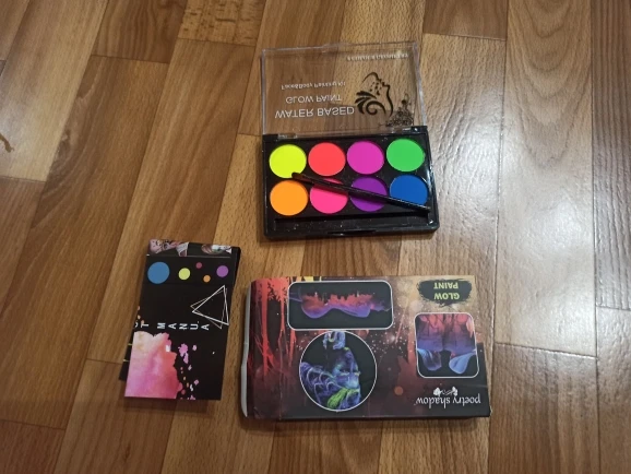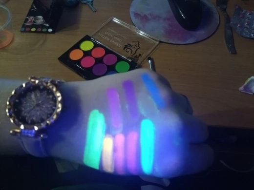 Краски потрясающие! Очень яркие, светятся в ультрафиолете (в темноте не светятся). Пришли быстро, качеством довольна =)