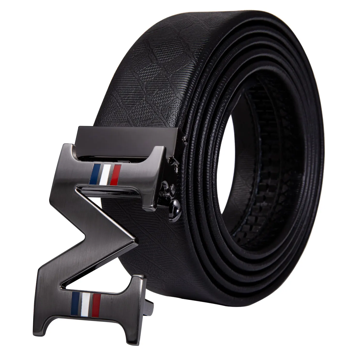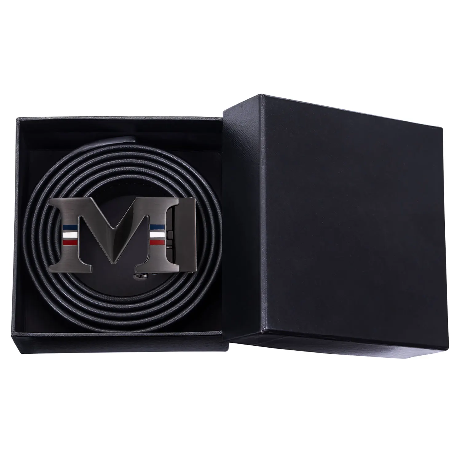 Ремень мужской кожаный в полоску, дизайнерский черный пояс из воловьей кожи с автоматической пряжкой, с надписью M, для джинсов Barry.Wang