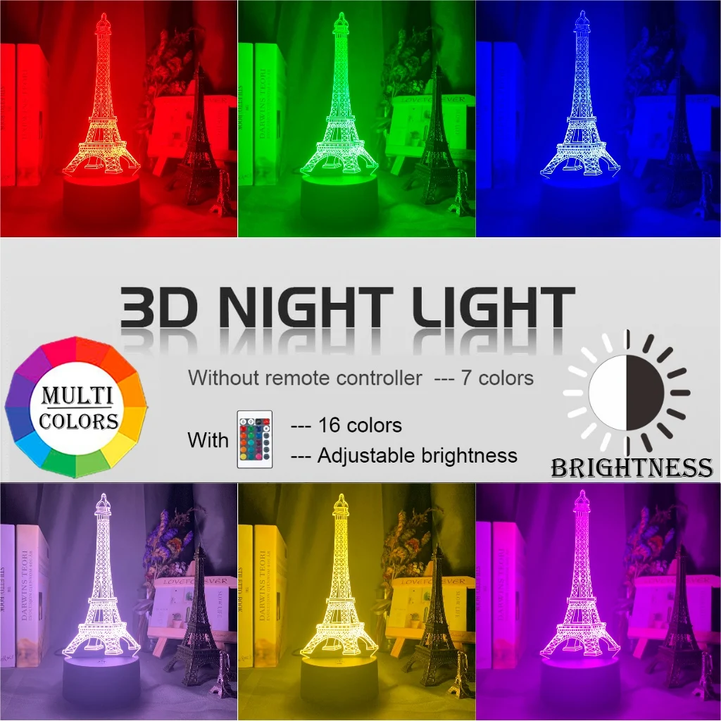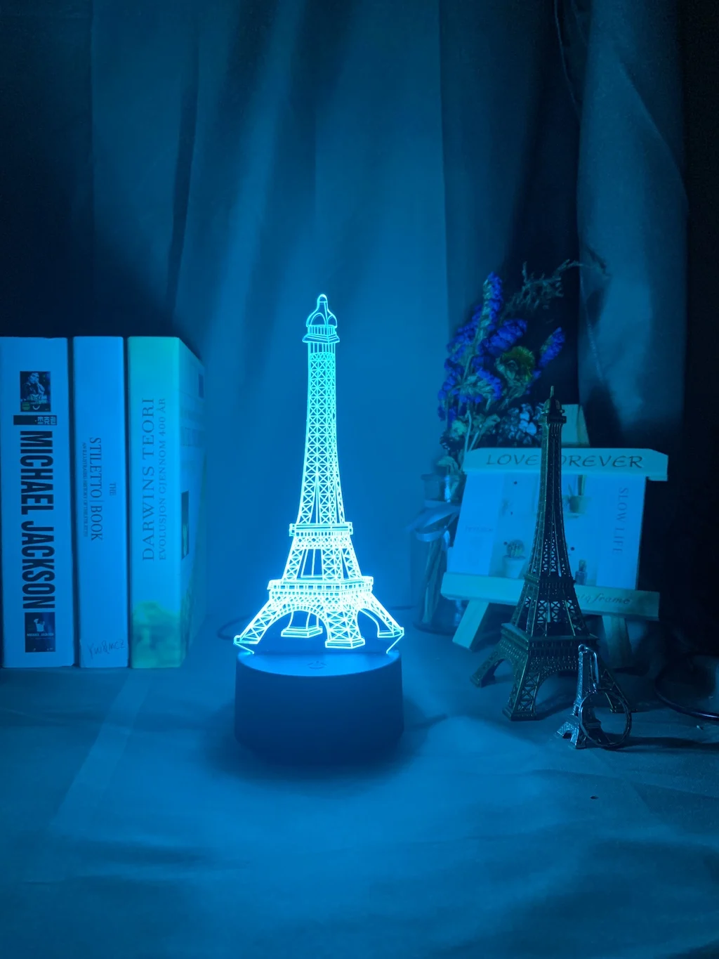 Светодиодный ночник с 3d иллюзией Эйфелевой башни Парижа, ночник, менясветильник цвет, украшение для спальни, уникальная настольная лампа для подарка на день рождения с Usb