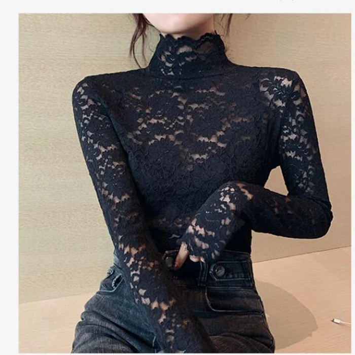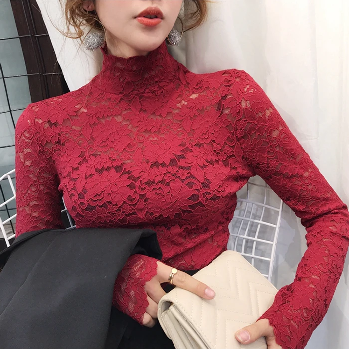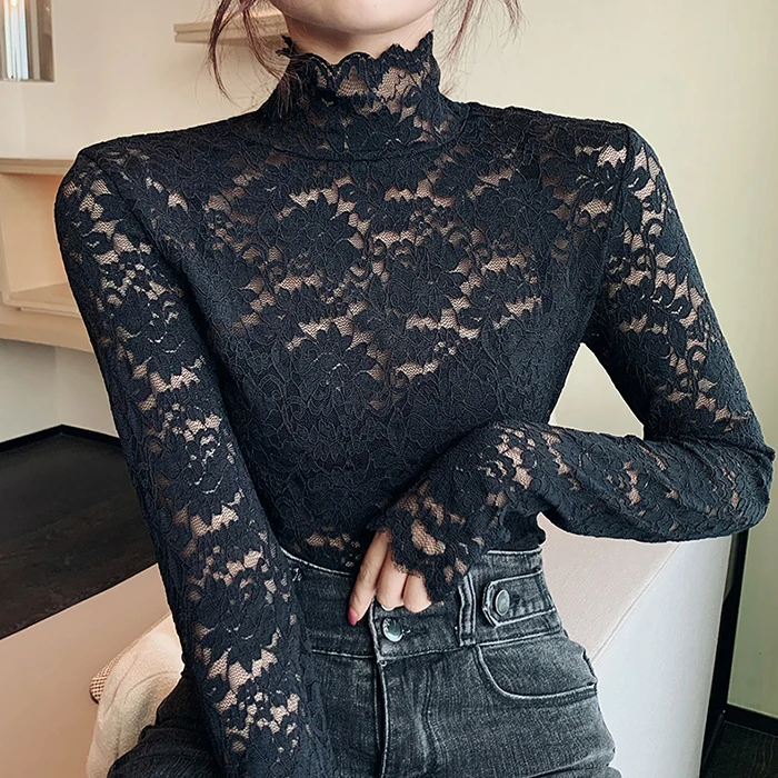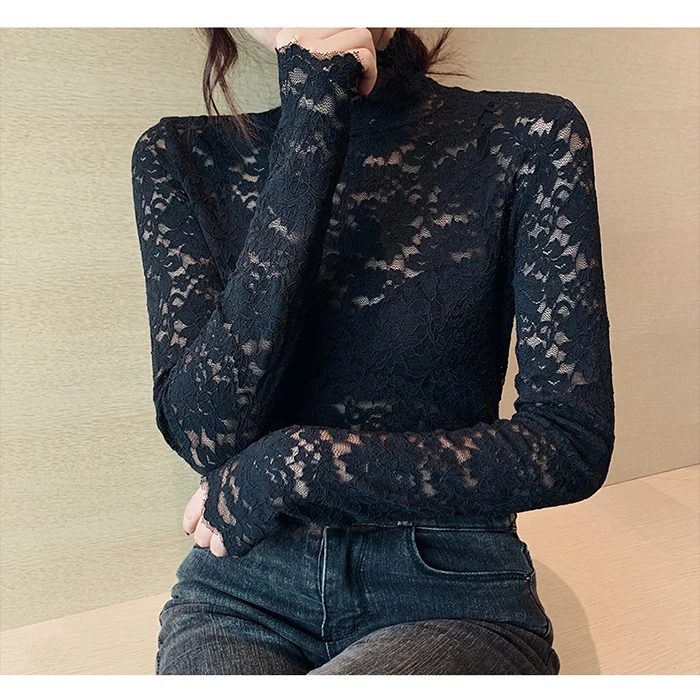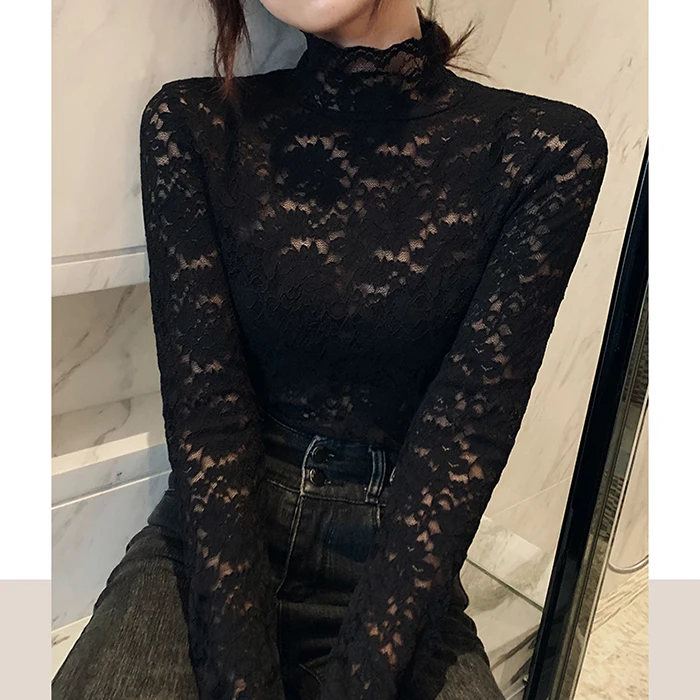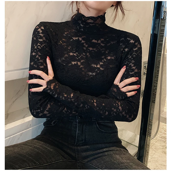 Женская кружевная блузка с вышивкой, элегантная ажурная блузка с длинным рукавом, весна-лето 2019