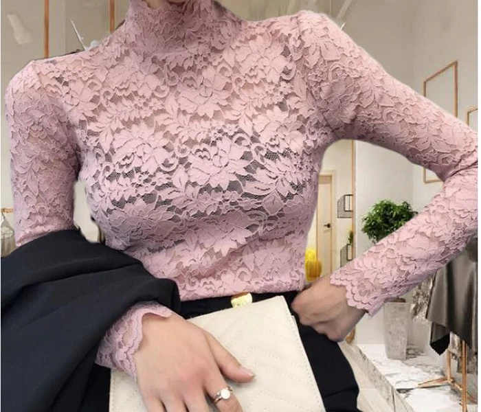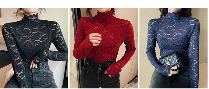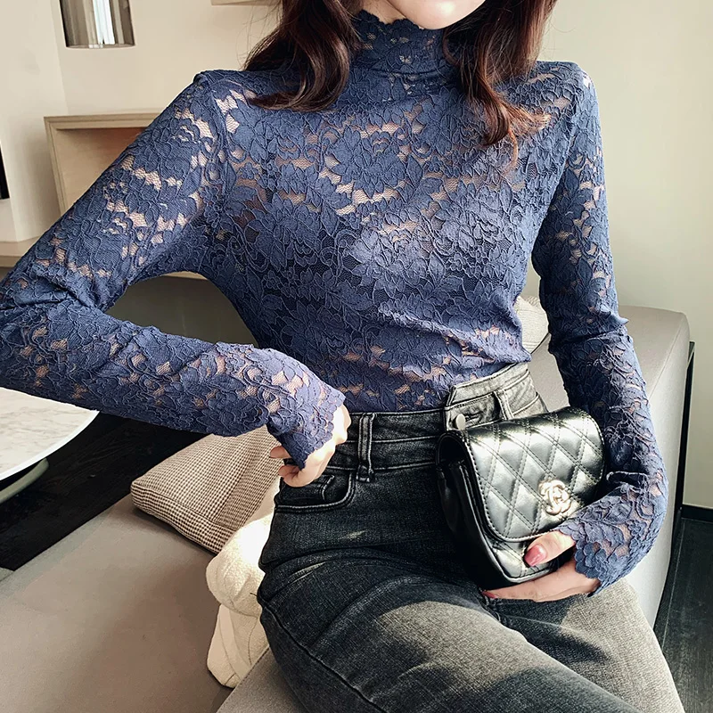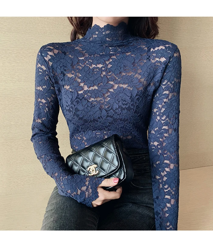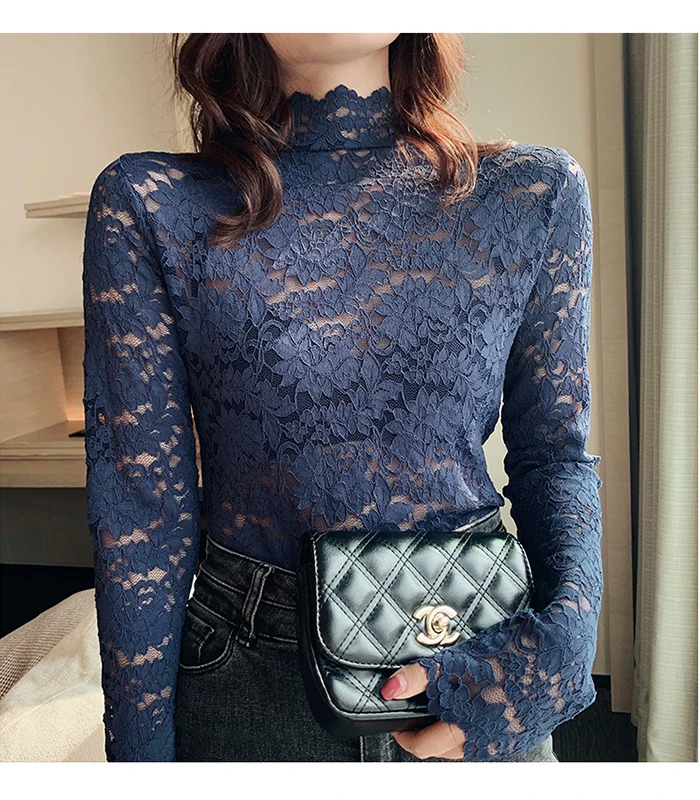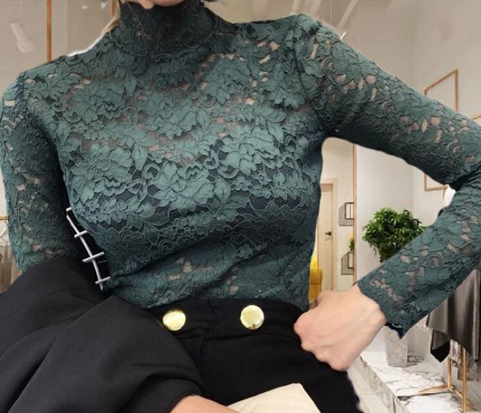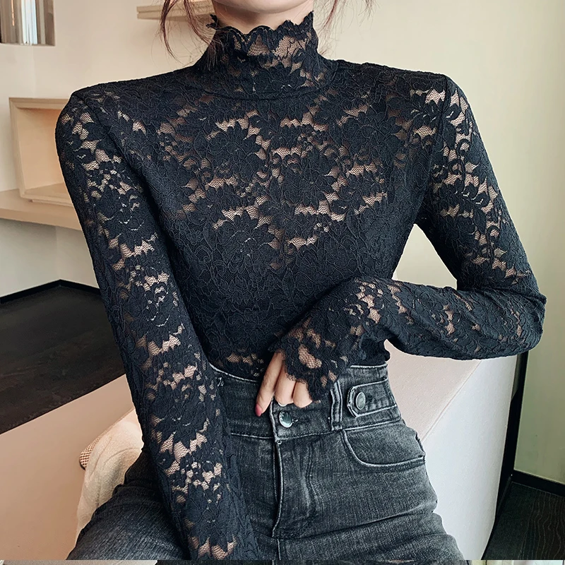 Женская кружевная блузка с вышивкой, элегантная ажурная блузка с длинным рукавом, весна-лето 2019