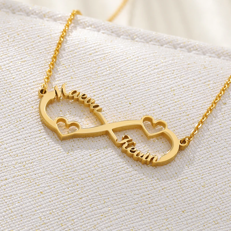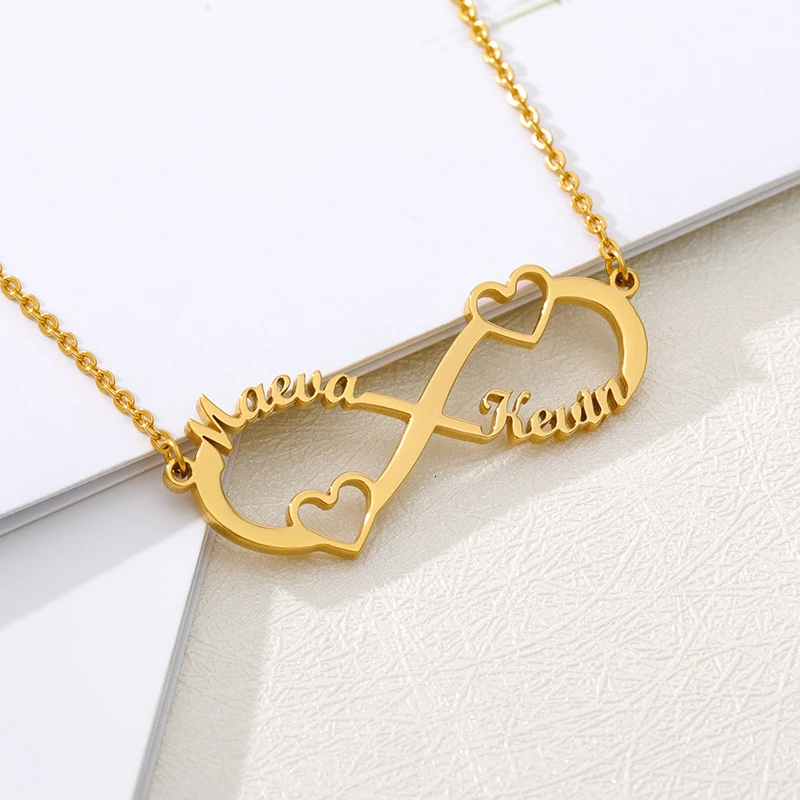 V-образное ожерелье с персонализированным именем, подвеска в виде знака бесконечности из розового золота и серебра, Ожерелье Дружбы, подарок подруге невесты, модные ювелирные изделия