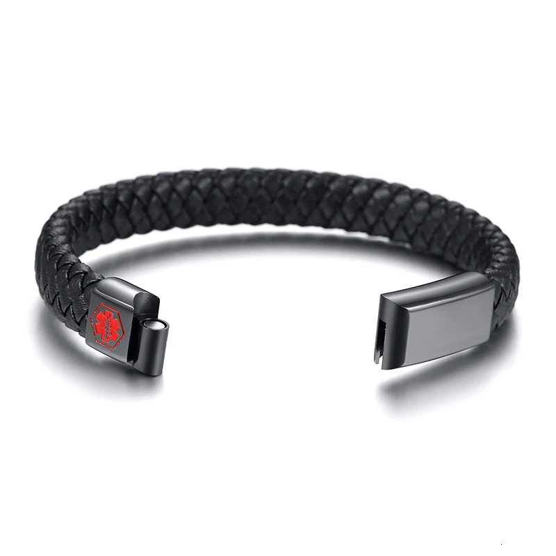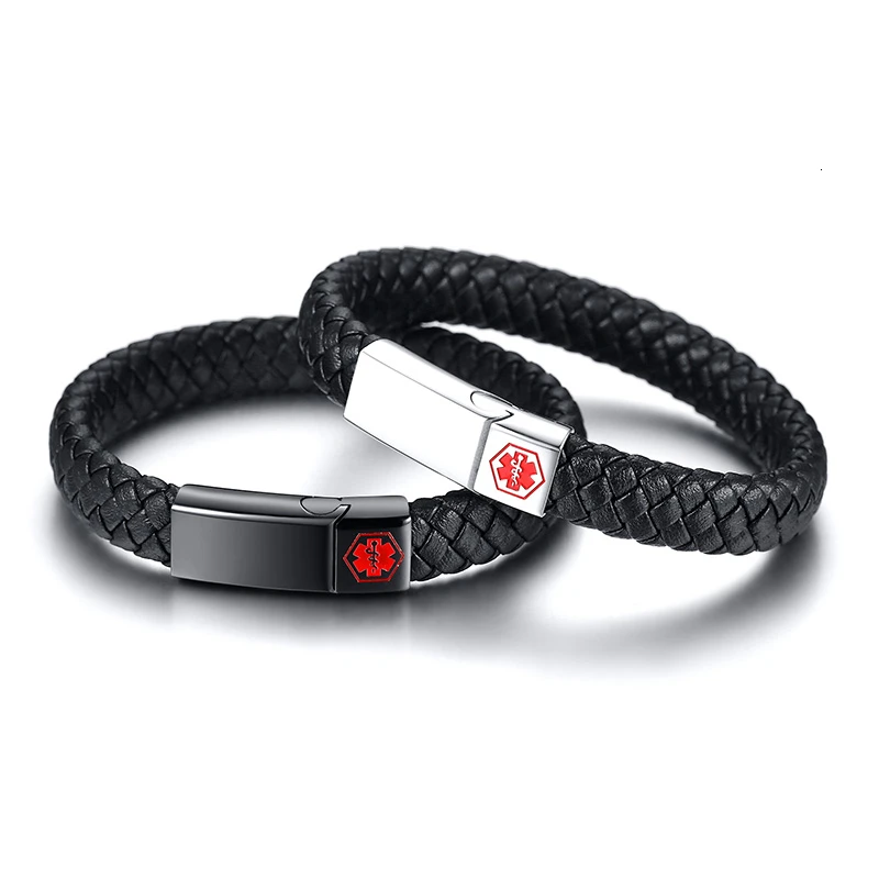 Медицинские браслеты с оповещением, браслет из нержавеющей стали с гравировкой для аллергии на диабете, мужской и женский плетеный кожаный браслет