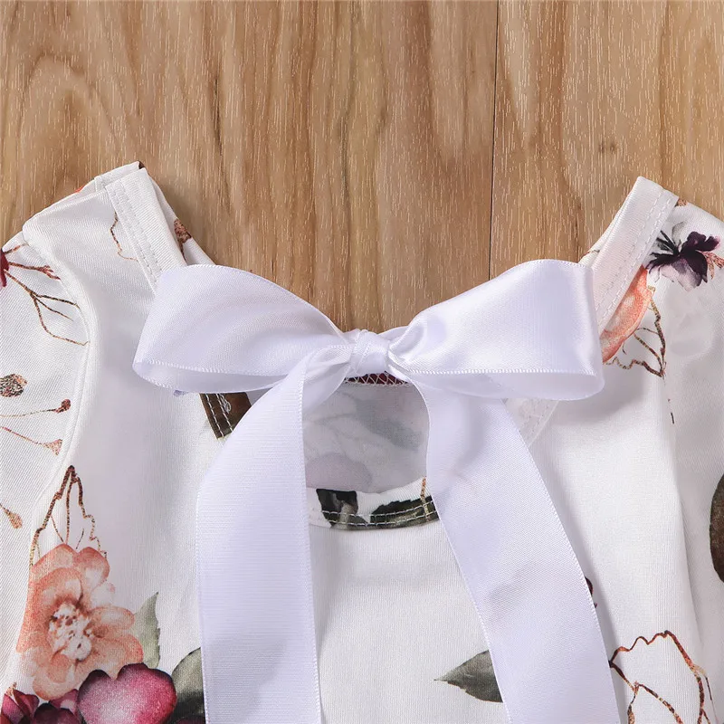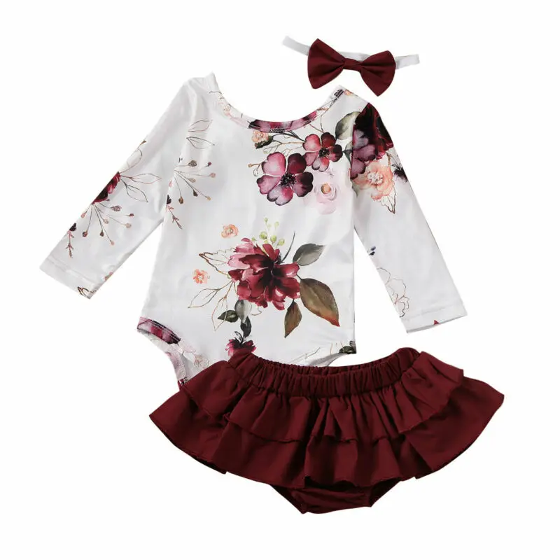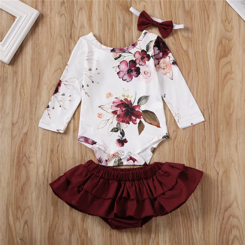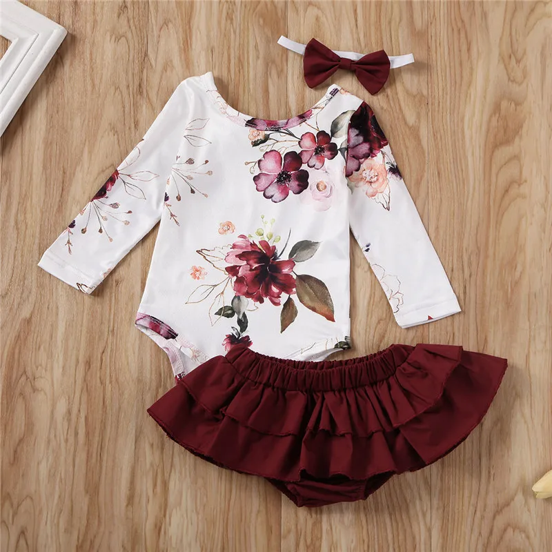 Милый комплект одежды из хлопка для новорожденных девочек, боди с цветочным принтом для девочек, топы + шорты с оборками + повязка на голову, 3 предмета, одежда для детей 0-12 месяцев