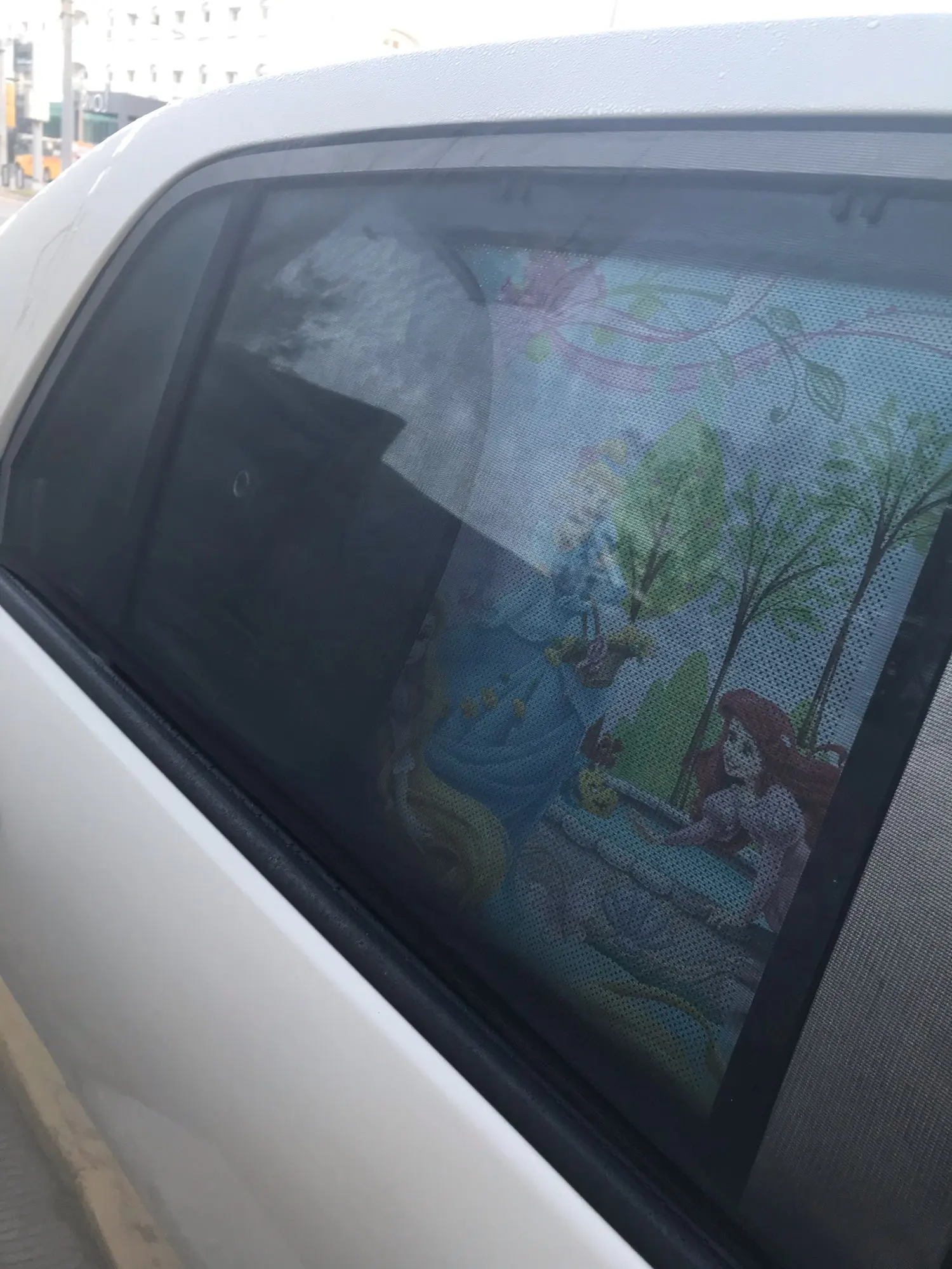 Маленький по сравнению с окнами автомобиля
