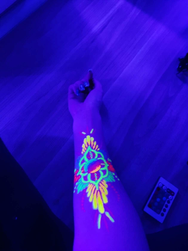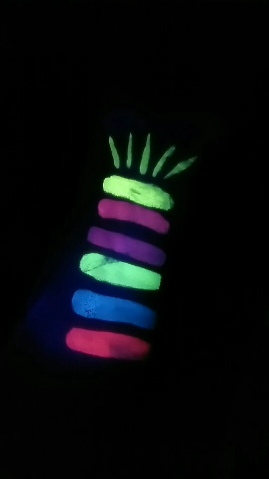 Он меньше, чем я ожидала, но, кажется, хорошо пигментирован, я использовал только желтый x выше и с черным светом он выглядит, без него это нормальный цвет