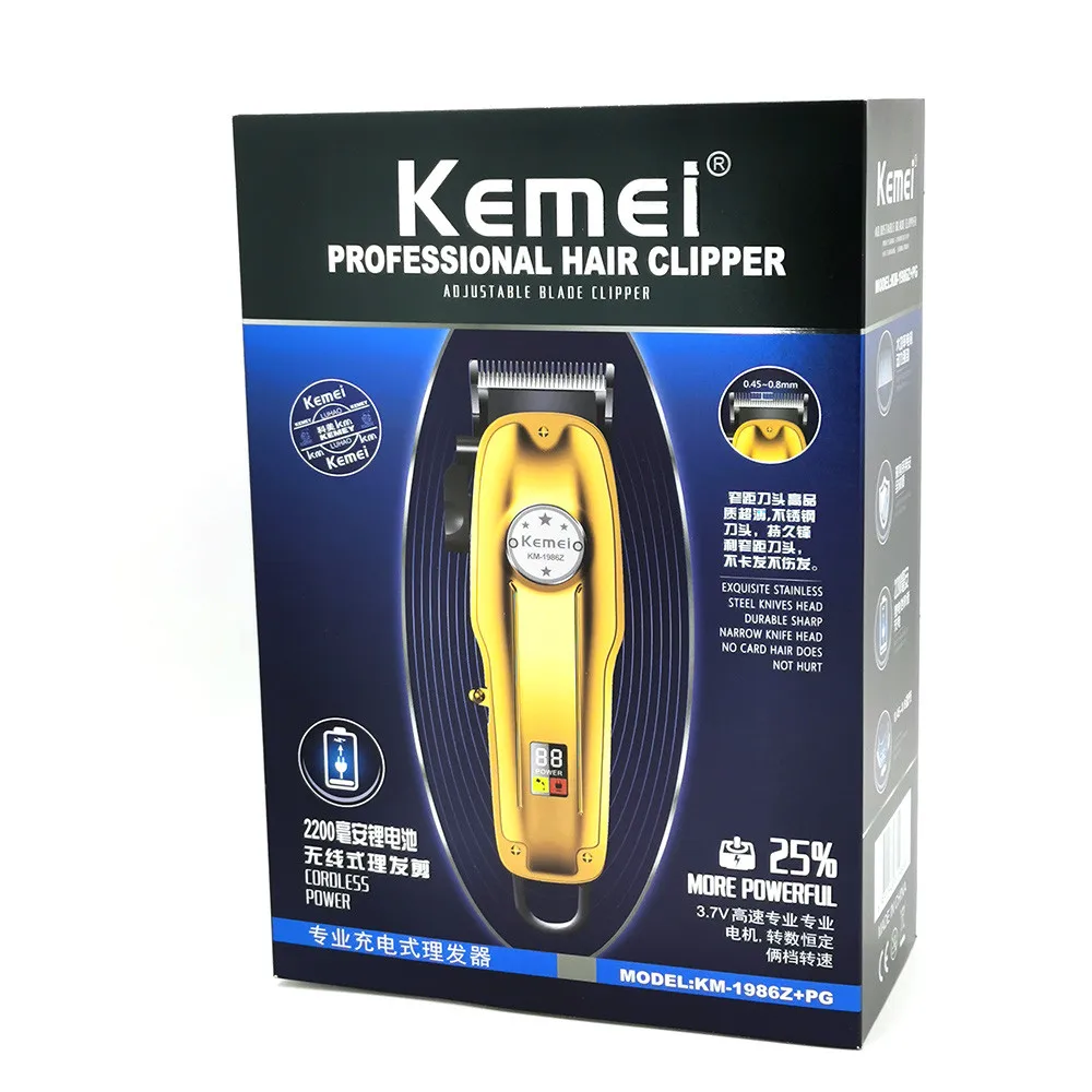 Цельнометаллическая Парикмахерская профессиональная машинка для стрижки волос Резак Электрический беспроводной триммер для волос золотистый и серебристый машинка для стрижки волос KM-1986 Z+PG