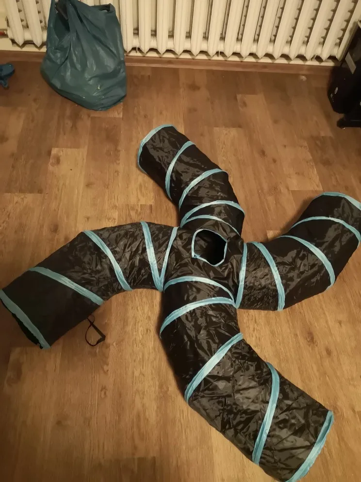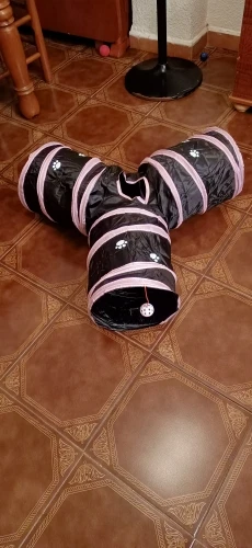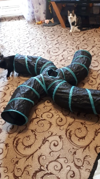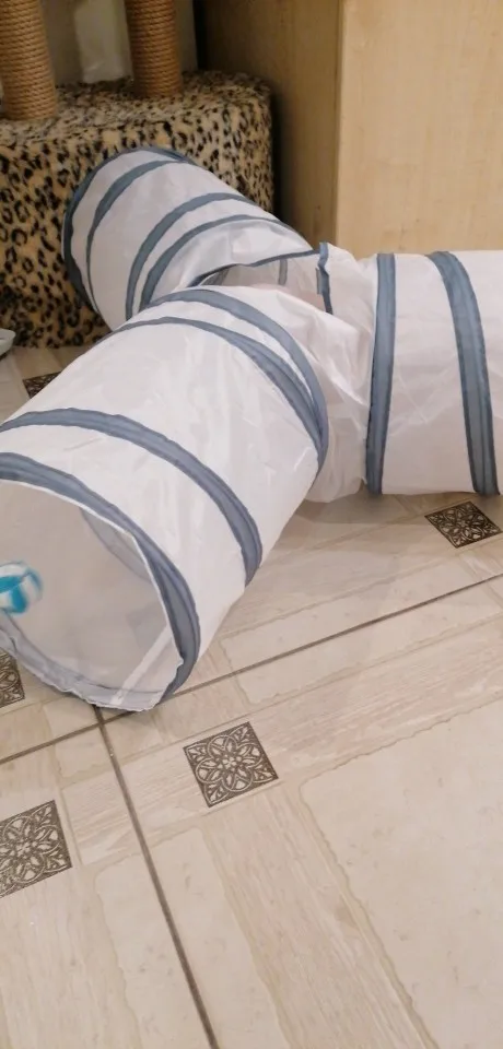Очень красивый и удобный туннель для кошек. Он выглядит меньше, чем на картинке, но его легко складывать и не занимает много места. Кошки действительно наслаждаются этим. Рекомендовать продавцу.