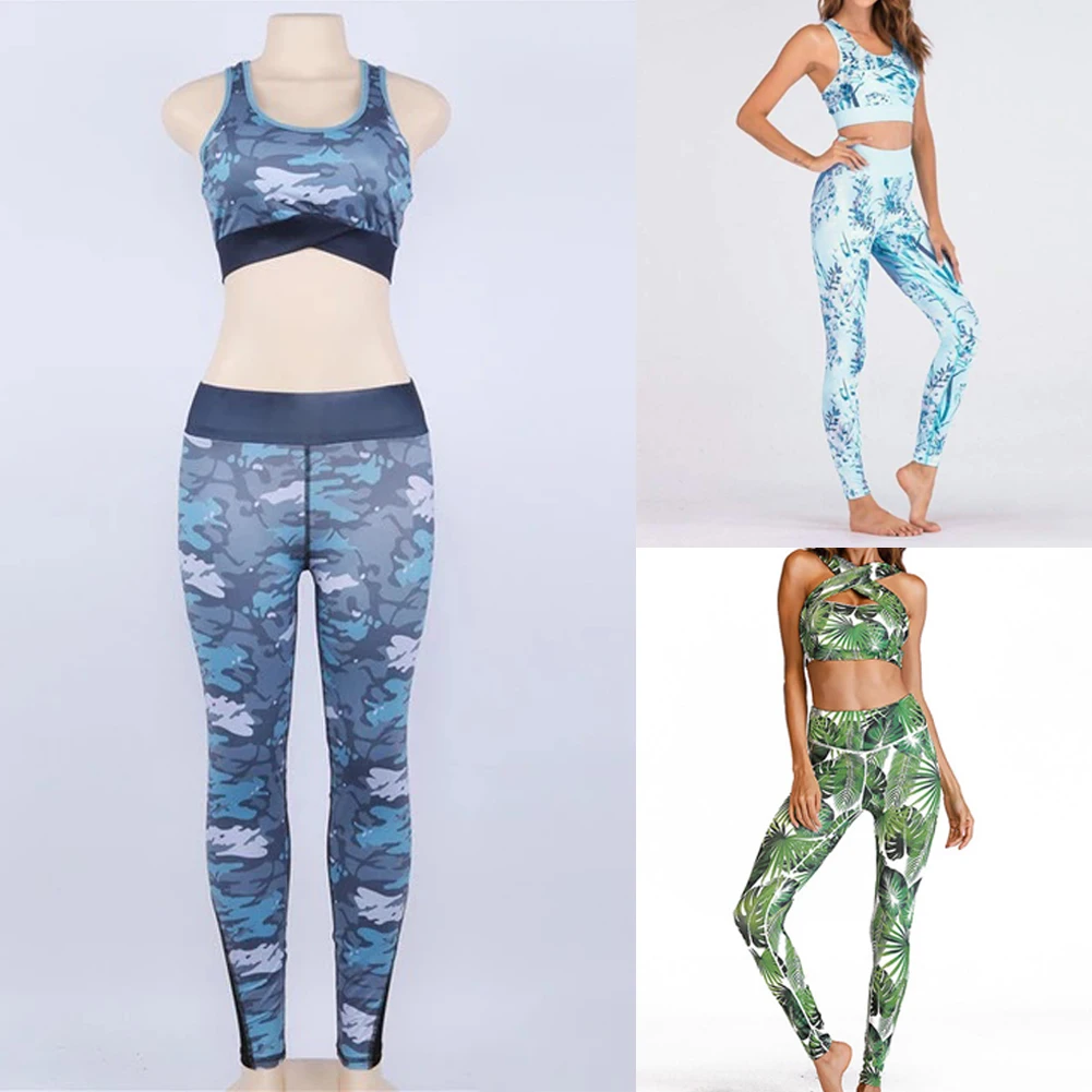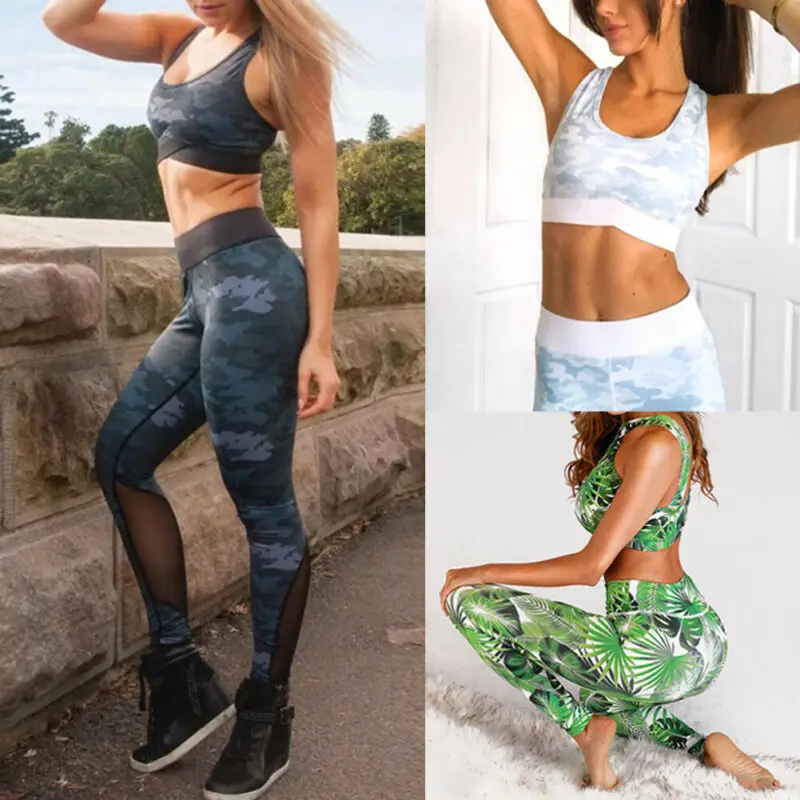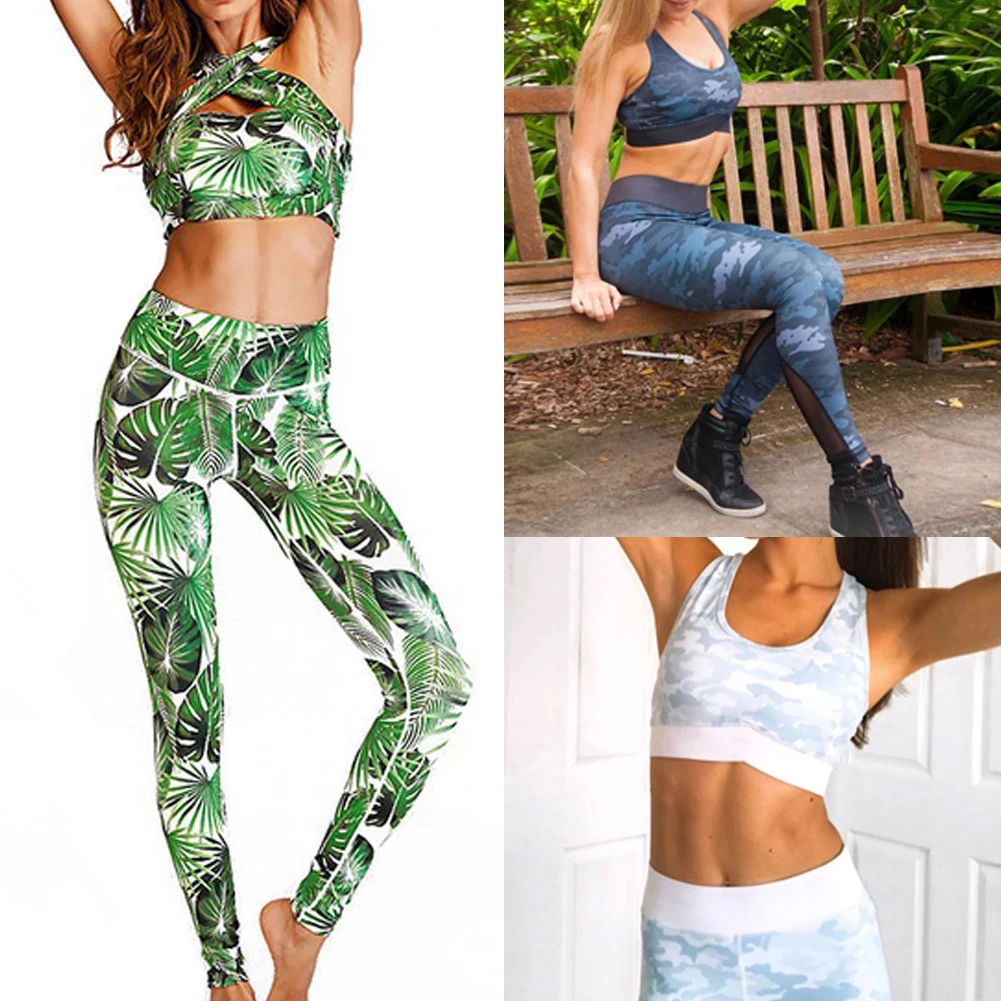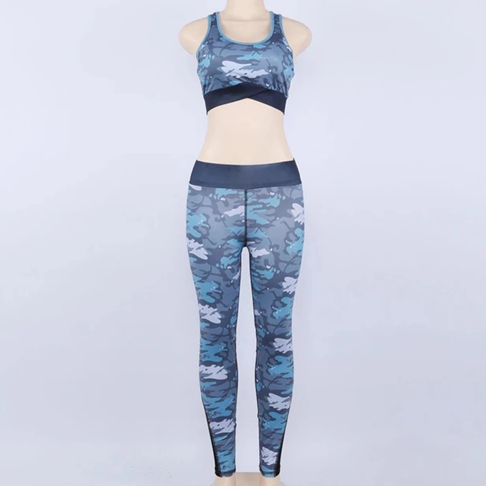 Комплект из 2 предметов, женская спортивная одежда, камуфляжный жилет, укороченный топ, спортивные длинные штаны, комплект из двух предметов