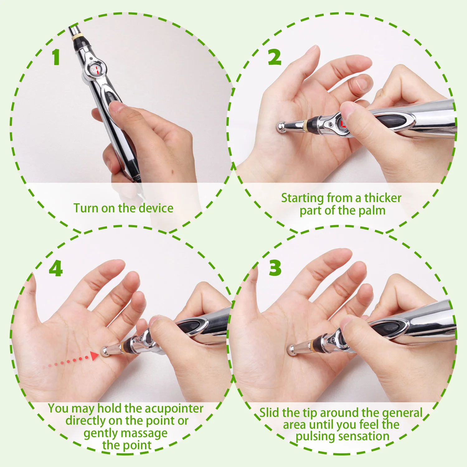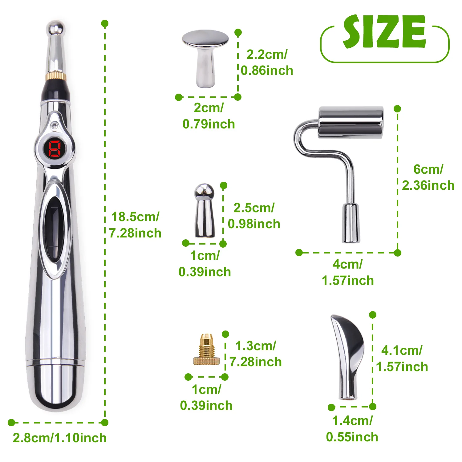 Акупунктурная ручка Электронная Акупунктура Меридиан терапия машина энергетические Ручки Массажер облегчение боли инструменты набор с 5 массажными головкамиПодробности:С нашим машинка для иглоукалывания вы получите преимущества Акупунктурной Терапии комфортного проживания вашего дома без иголки и без боли.Просто прижмите ручку к пораженным участкам и она выпустит электрический пульс, чтобы стимулировать Меридиан и акупунктурные точки в вашем теле для заживления и облегчения боли.Наш электрический акупунктурный инструмент поставляется с 5 уникальными головками и имеет 9 регулируемых уровней интенсивности, чтобы удовлетворить ваши различные потребности.Самое главное, что нужно знать о acupoints, поэтому эта ручка поставляется с руководством пользователя, которое имеет несколько диаграмм о терапевтических точках тела, чтобы показать, где использовать ручку.При частом использовании этого электронного массажера для спины вы сможете уменьшить боль, повысить настроение, расслабиться, улучшить состояние кожи и предотвратить преждевременное старение.5 уникальных головок:1. Сферический массажер: для быстрого облегчения боли2. Точечный массажер: для боли в теле3. Массажер для красоты лица: для здоровья и красоты лица4. Массажер для скраппинга: для иглоукалывания и кровообращения5. Акупунктурный нарезающий массажер: для нарезания и прокатки массажа для облегчения болиКак использовать:(Мы рекомендуем попробовать сначала с более толстой части ладони, и лучше адаптироваться с 1 уровня)1. Включите устройство, нажав кнопку «+», на дисплее должен появиться номер «1»2. Нанесите небольшое количество контактного геля на кожу, что может уменьшить дискомфорт. (гель не входит в комплект, вы также можете использовать массажное масло или лосьон вместо этого)3. Нажмите и сдвиньте кончик вокруг общей области, пока не почувствуете сильный пульс. Вы можете держать акууказку непосредственно на точку или мягко массировать точку.4. Нажатие кнопки «-» на «0», ручка автоматически отключится, просто возьмите 2-3 секундыОбратите внимание, что меридиановая ручка и тело должны создать тело с микро-током, которое является основой работы, например:1. Лично удерживайте меридиановую ручку, поместите наконечник в болезненное положение вашего тела, облегчите боль для себя2. Когда вы помогаете другу использовать, держите меридиановую ручку в одной руке, кончик ручки помещается в болевое положение тела вашего друга, А другая рука должна быть помещена на тело друга, чтобы установить микро-ток тока петли телаПожалуйста, обратите внимание:1. Так как эта ручка использует вашу руку в качестве наземного полюса для завершения цепи, так что есть небольшое позиционирование, вы можете почувствовать легкий Электрический шок. Это потому, что в руке много острых точек. Просто вы должны слегка изменить сцепление или захватить устройство с большей поверхностью вашей руки, чтобы рассеять эффект2. Явление, как «Электрическая утечка, электрическое онемение, электрическая стимуляция» электронной акупунктурной ручки, как описано выше, не является проблемой качества, но ее Принцип лечения3. В процессе возврата, в зависимости от размера сопротивления рук, сила, которую вы чувствуете, будет немного отличаться. Некоторые люди (молодые/здоровые) чувствуют себя более сильными, а нек