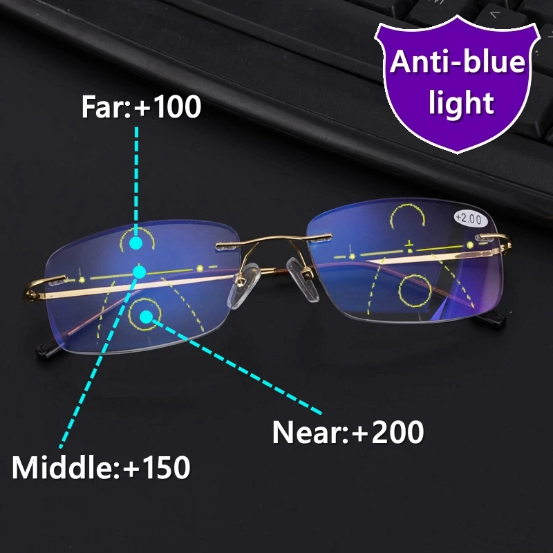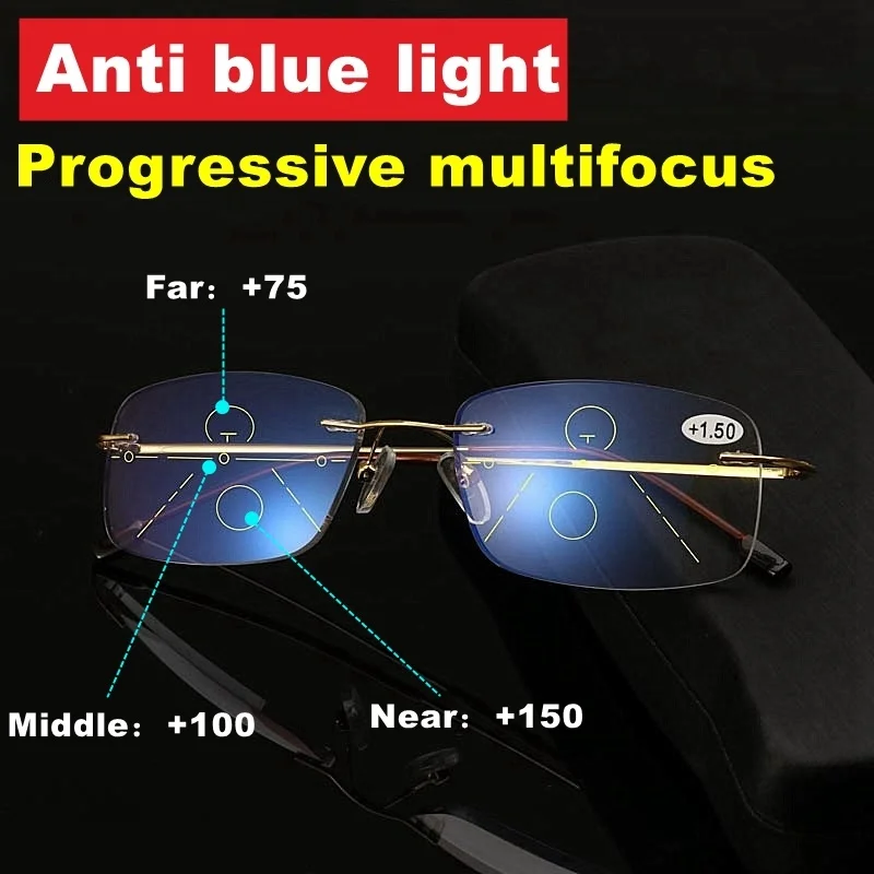 Мультифокальные очки для чтения мужские, без оправы, с защитой от синего света
