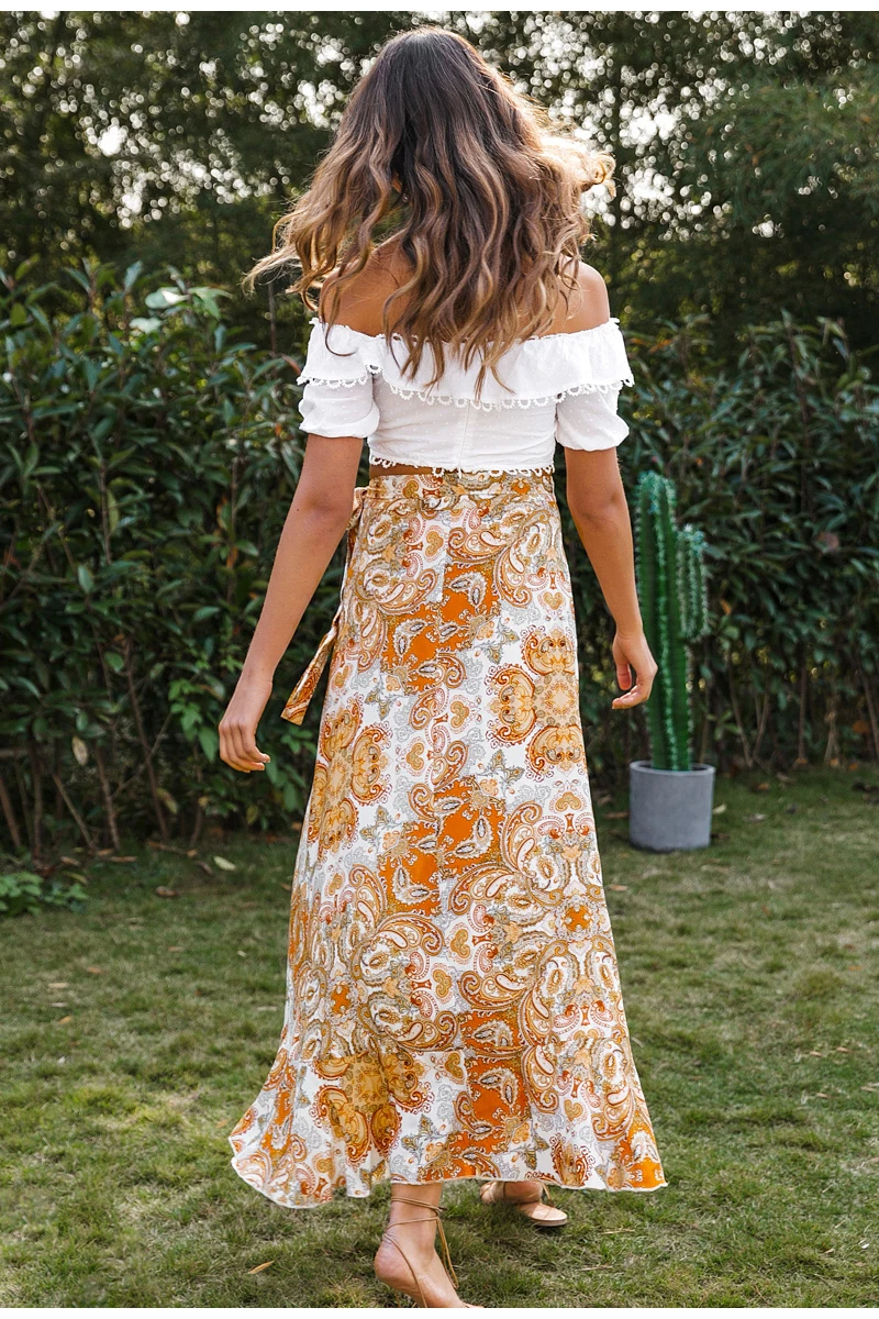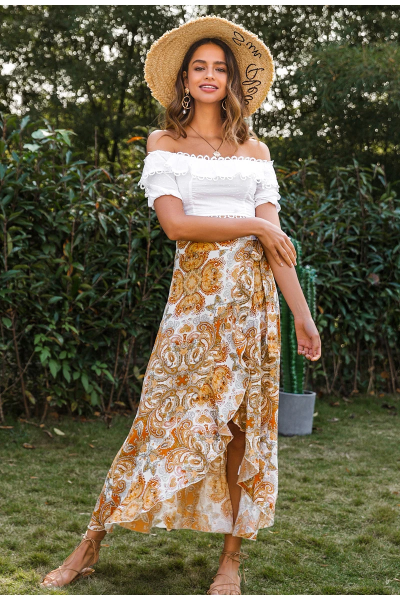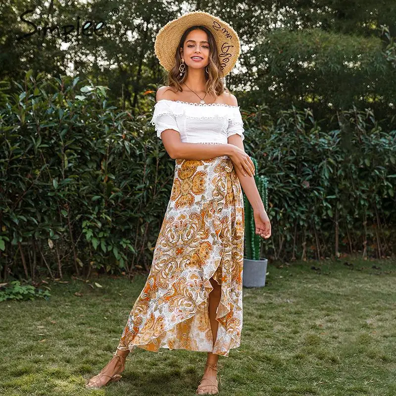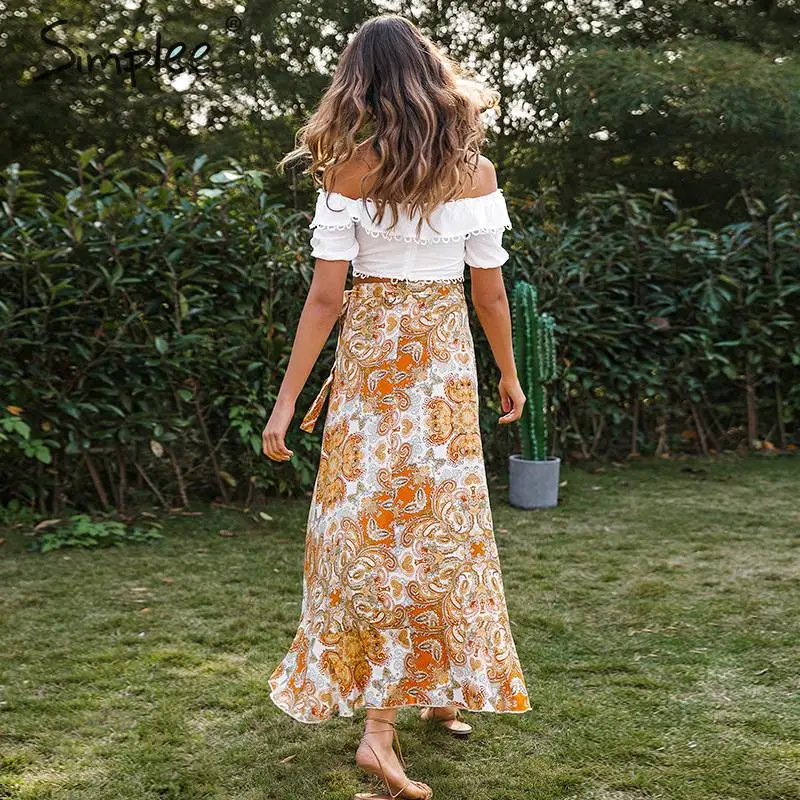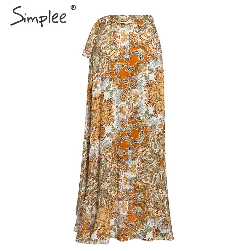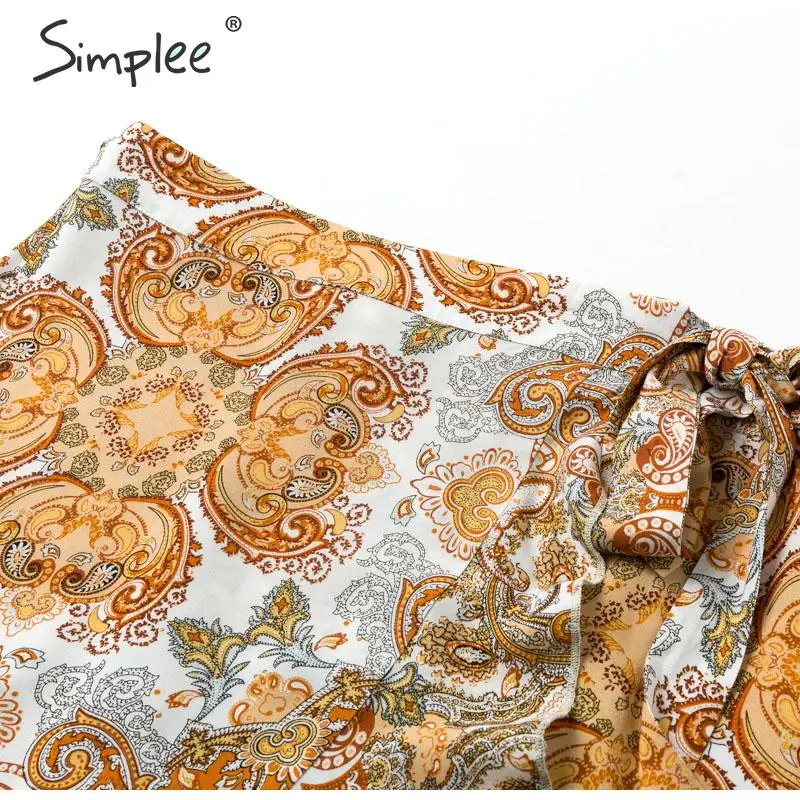 Женская юбка с цветочным принтом Simplee, длинная юбка с оборками и разрезом, летняя Стильная юбка с высокой талией и галстуком-бабочкой
