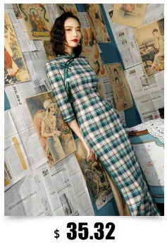 SHENG COCO современное Хлопковое платье Чонсам Женская клетчатая од...