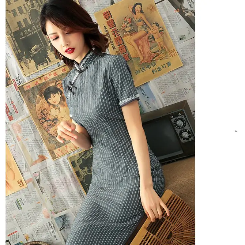 Sheng Coco, лидер продаж, традиционное китайское платье, 4 цвета, в клетку, Chipao, женское летнее платье-Ципао, эластичное хлопковое милое платье