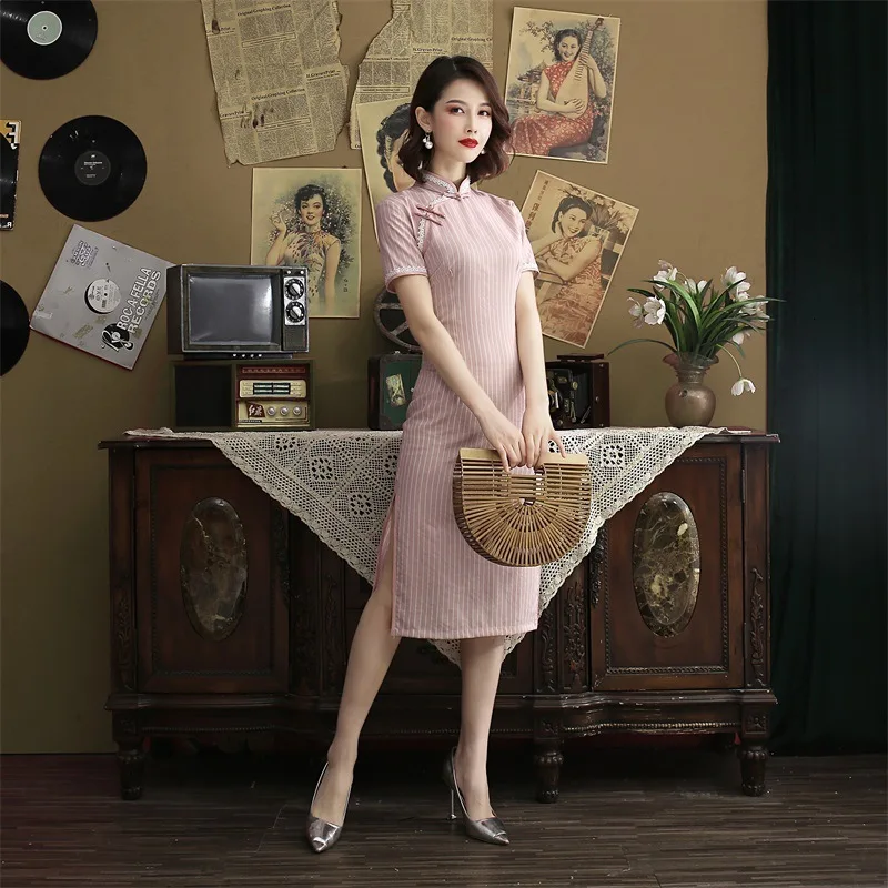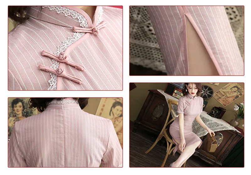 Женское винтажное платье Ципао Sheng Coco, розовое короткое платье ...