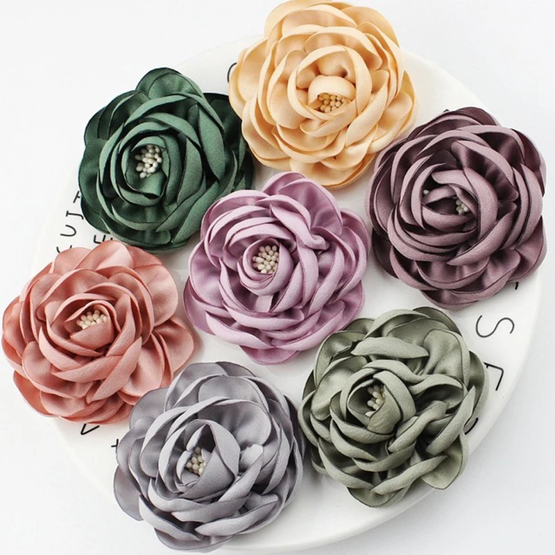 20 шт.лот бутоньерка ручной работы размером 7,5 см чай цветок камелии сжигающие края тканевые цветы DIY бутоньерка для девочек аксессуары для волос
