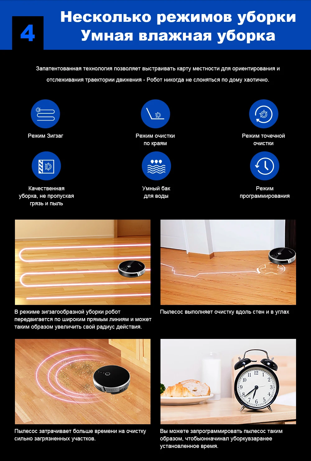 Отличный робот-пылесос. Заказывали данное устройство впервые. доставка очень быстрая 3 дня и готово(доставка из России до г. Домодедово). Курьер позвонил заранее, упаковка не была нарушена. Комплектация как в описании, инструкция очень хорошая на русском и др. языках, продавец надежный. перед покупкой задавал продавцу некоторые вопросы в чате, отвечал очень быстро и понятно. Мобильное приложение достаточно удобное, настройка и подключение к роутеру не заняла много времени. проверил пылесос в режиме сухой уборки, очень хорошо прибрался. влажную уборку также попробовали, результат: огонь прошелся по несколько раз, грязь не размазывает. причем контейнер для влажной уборки разделен на два отсека в одном вода, в другом собирается обычный сухой мусор, очень удобно. на уборку влажную затратил 50 минут, прошел 50 Кв. метров. израсходовал 30процентов заряда. без особых проблем нашел базу. товар рекомендую.
