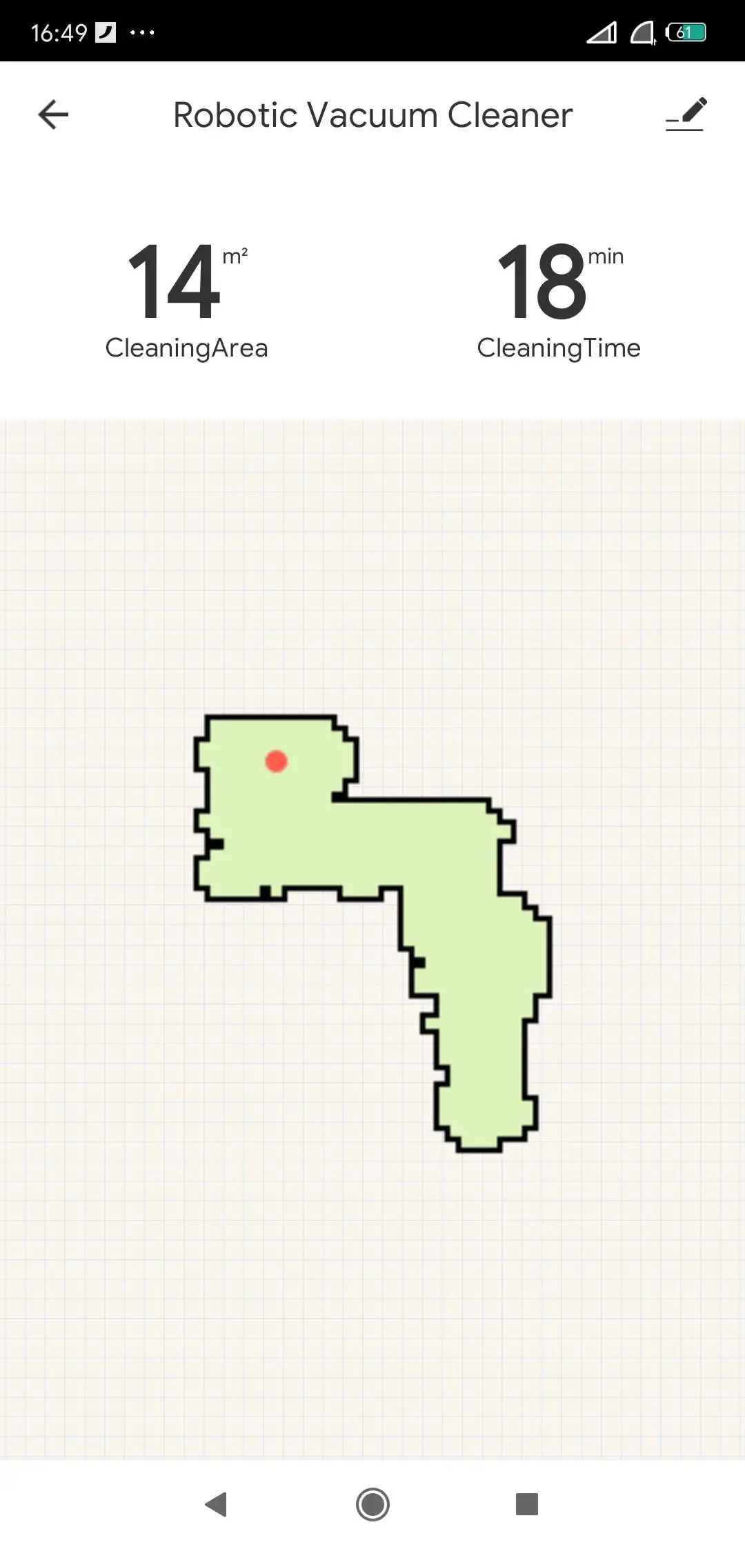 Очиститель не может быть нанесен таким образом, чтобы вы выбрали область на карте для очистки. Только то, что вы получаете, это карта очищенной области. Есть несколько режимов-автоматическая Чистка, чистка комнат, чистка пятен и чистка краев. Тем не менее, я очень доволен, как автоматическая Чистка работает, поэтому я не разочарован, что вы не можете выбрать конкретную область на карте. Фото показывает, как выглядит после чистки 2 комнат в режиме автоматической очистки. За эти 18 минут работы, было использовано 17% батареи. Более чем достаточно.
