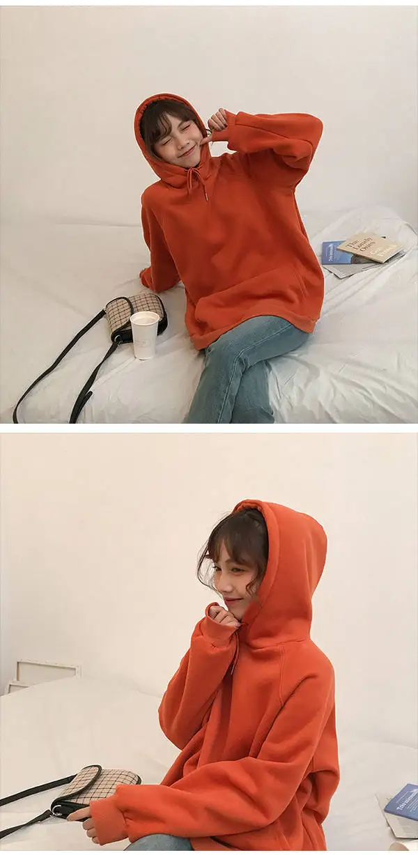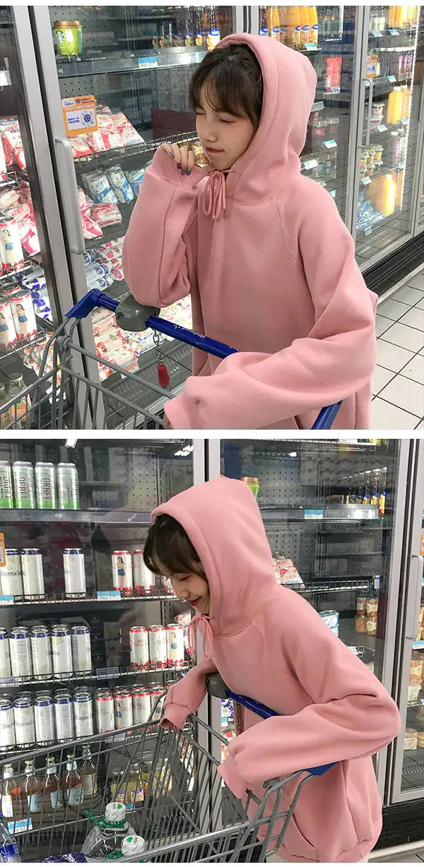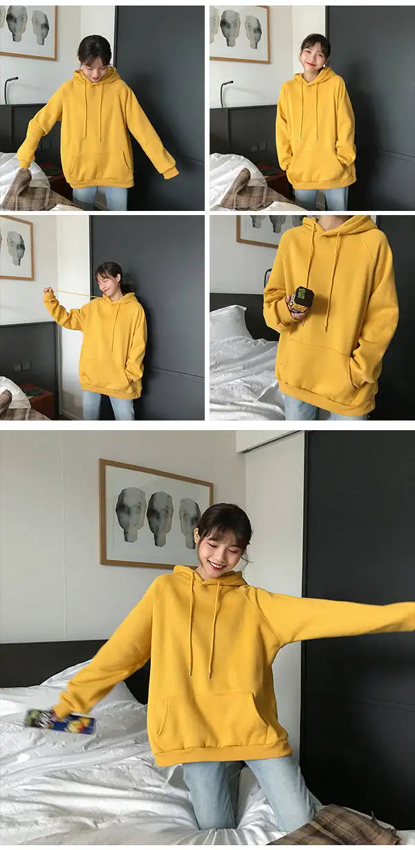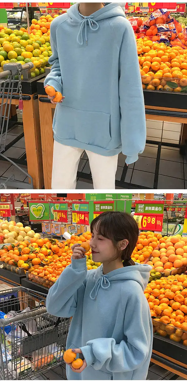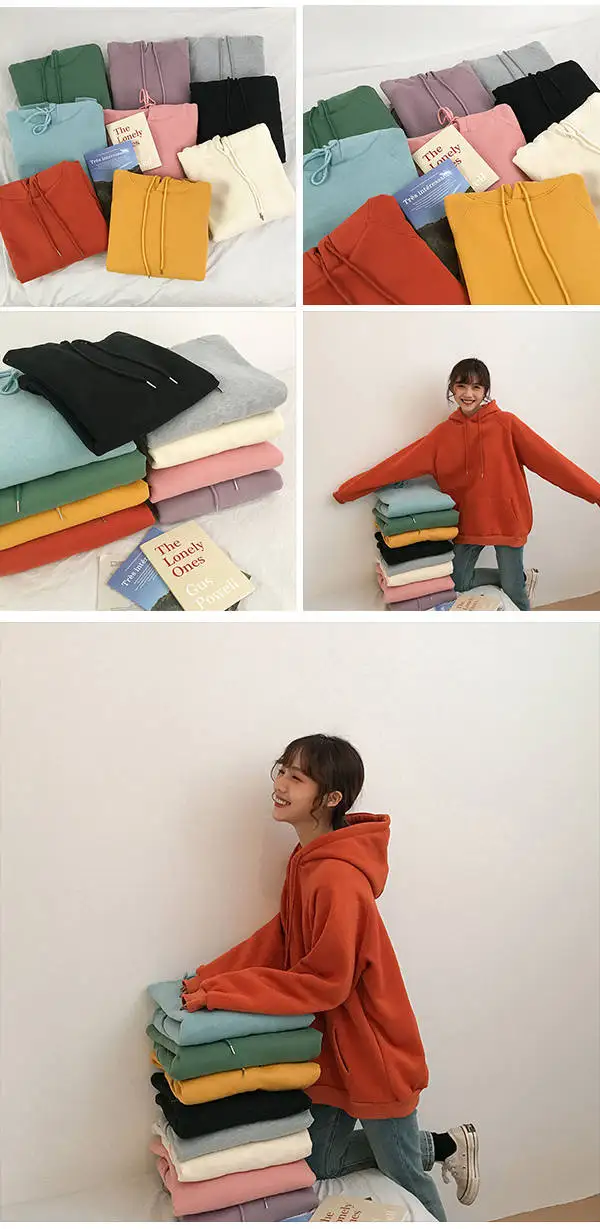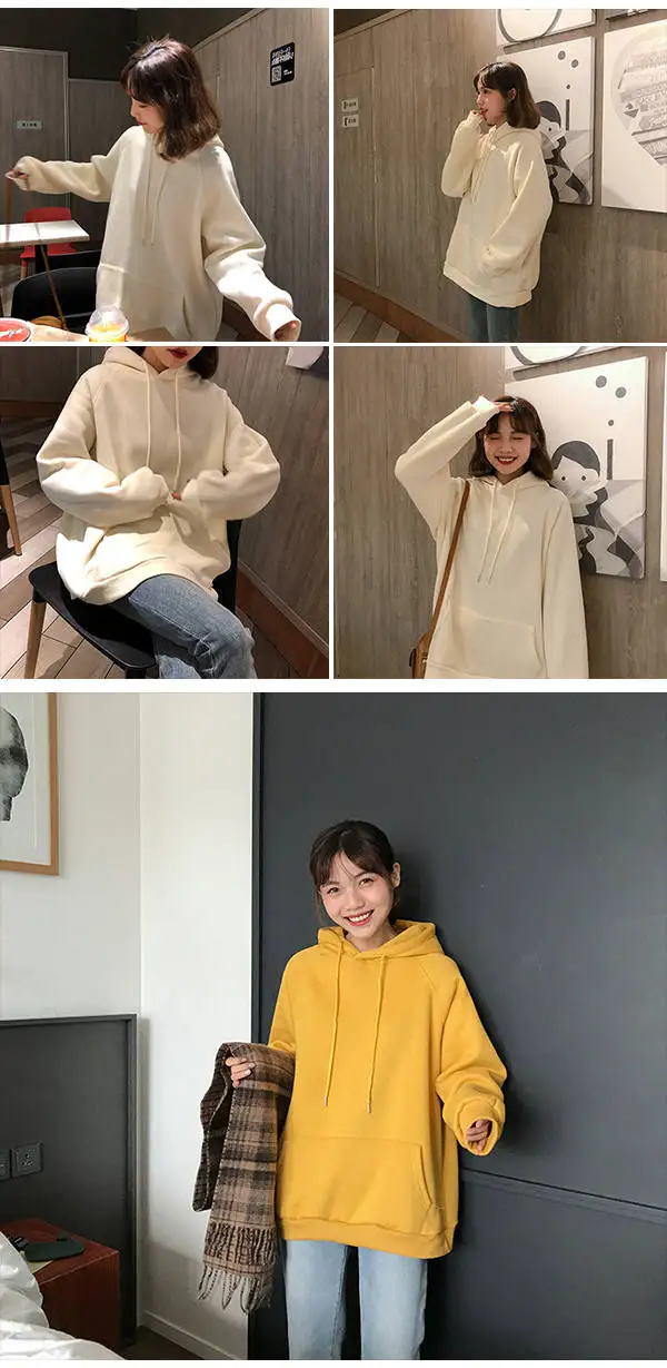 9 цветов новые осенние трикотажные женские Harajuku милые негабаритные толстовки с длинным рукавом плюс бархатная Женская Толстовка на шнуровке Kpop одежда