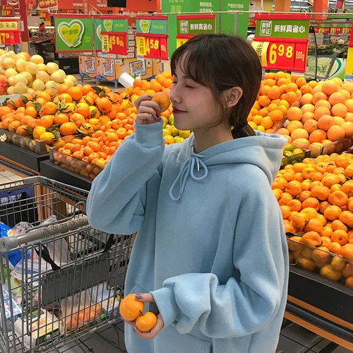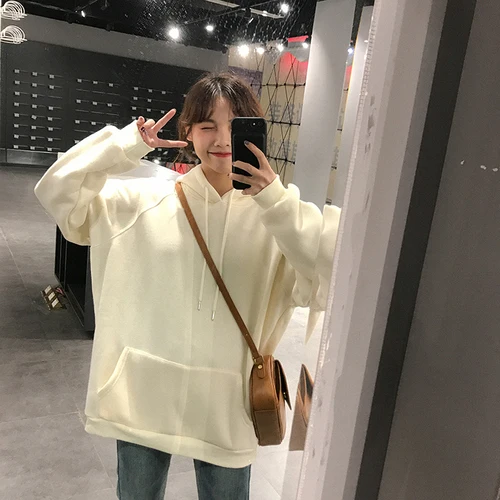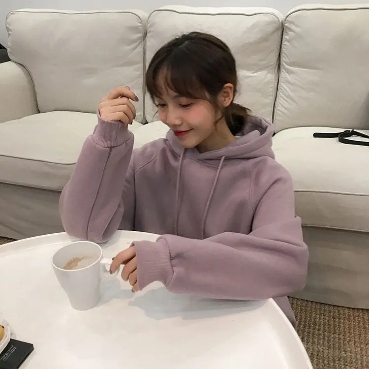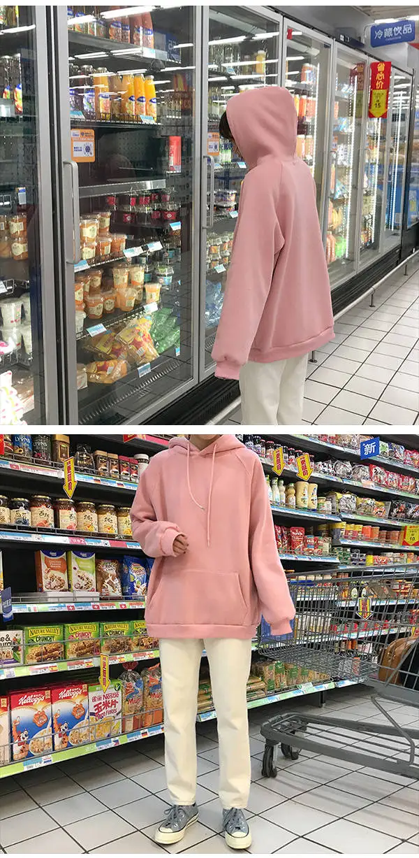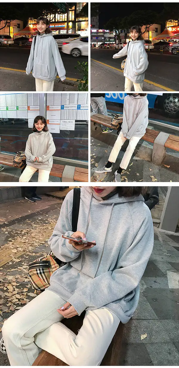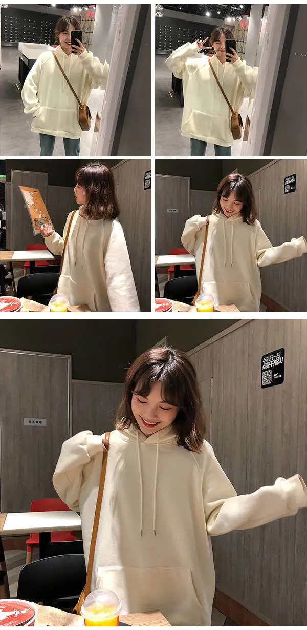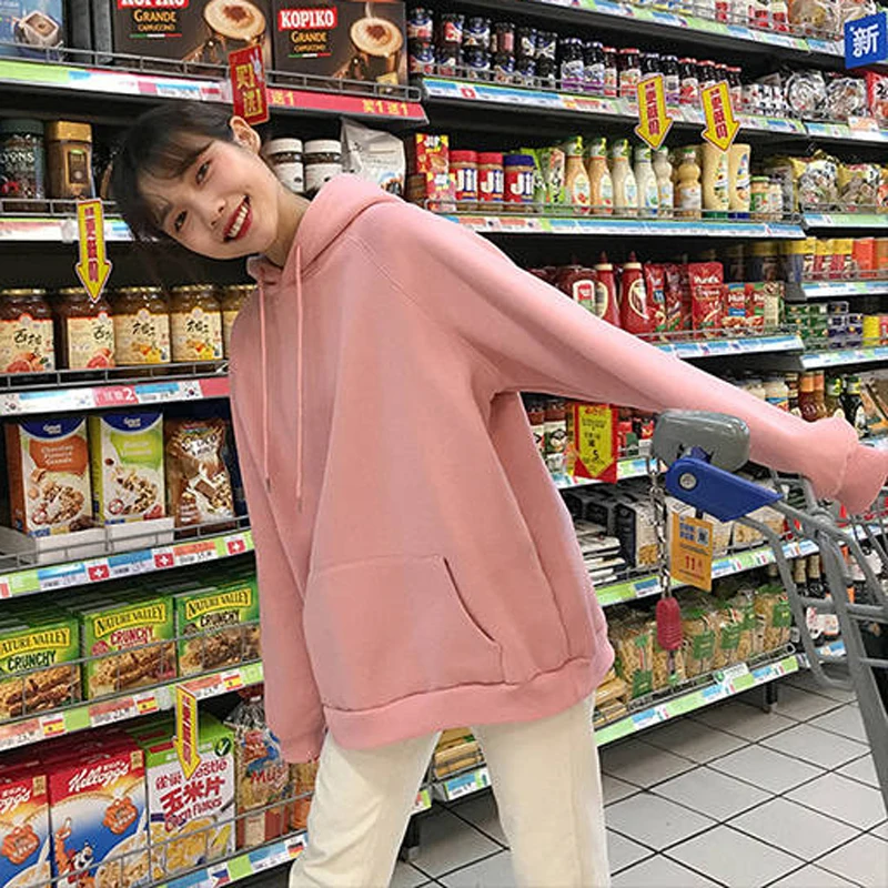 9 цветов новые осенние трикотажные женские Harajuku милые негабаритные толстовки с длинным рукавом плюс бархатная Женская Толстовка на шнуровке Kpop одежда