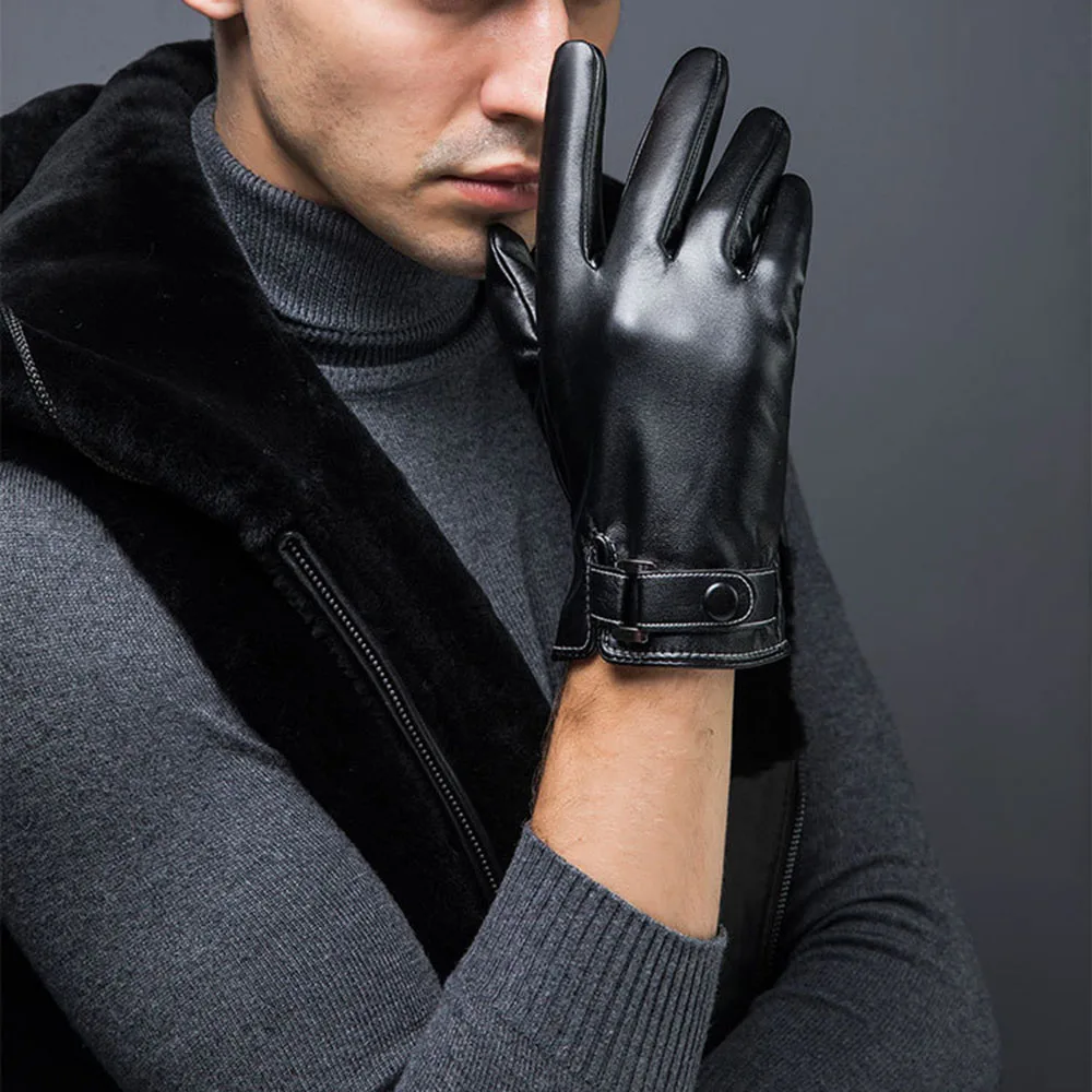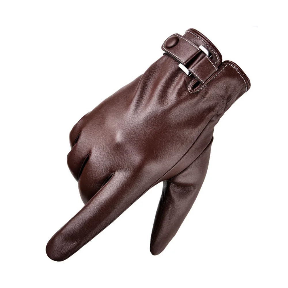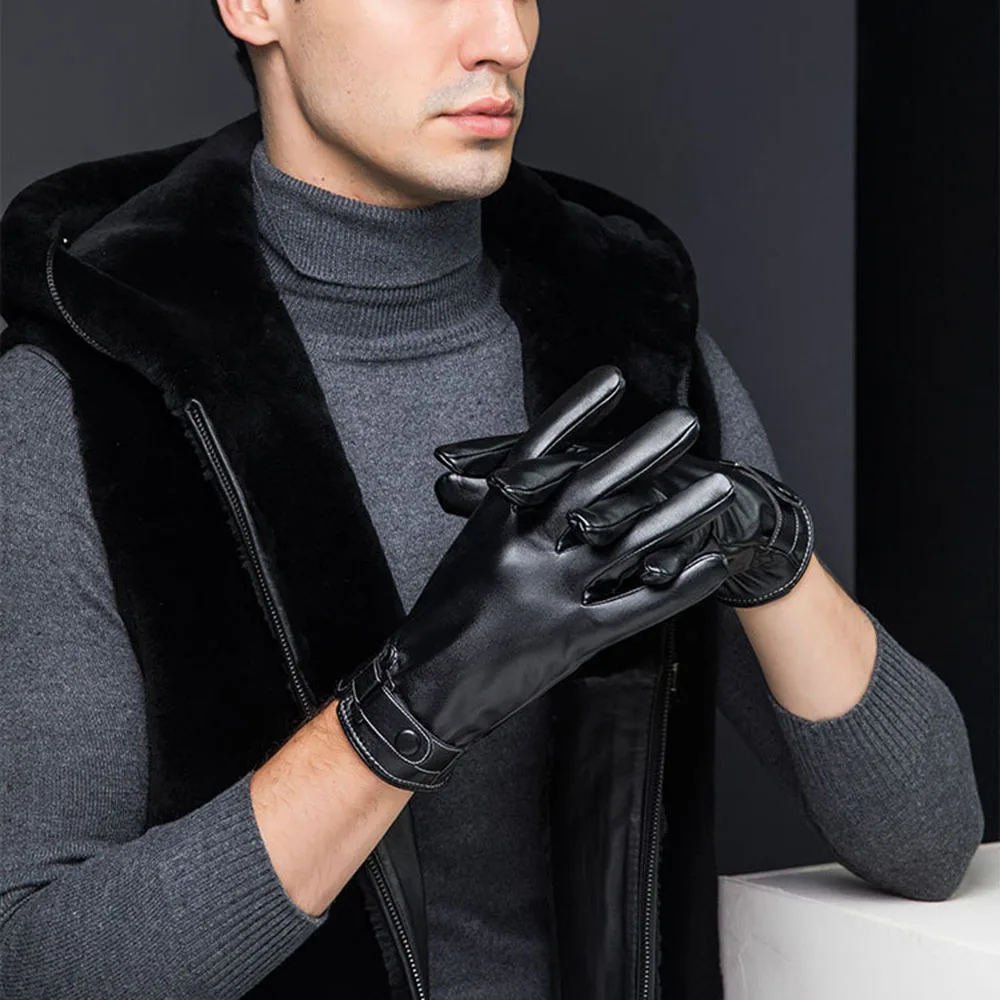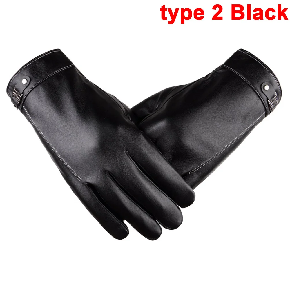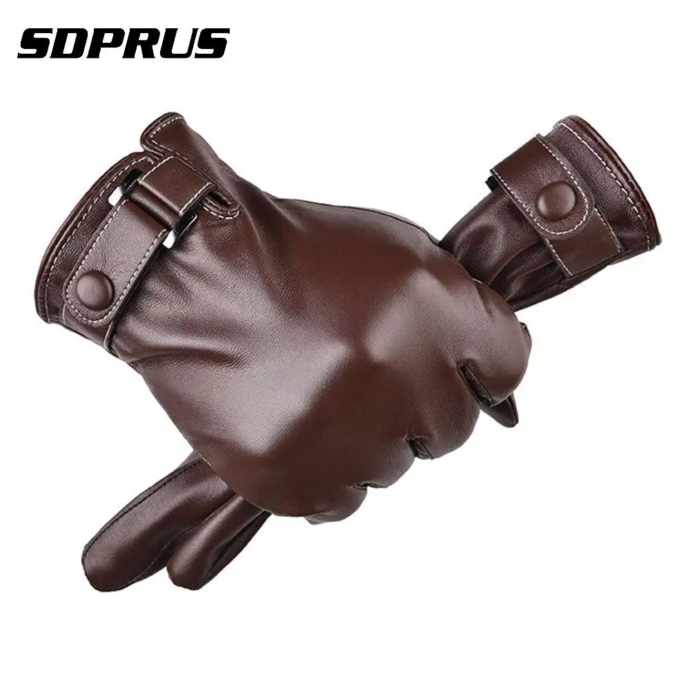 Зимние перчатки для мужчин из искусственной кожи с сенсорным экраном, ветрозащитные плотные теплые варежки
