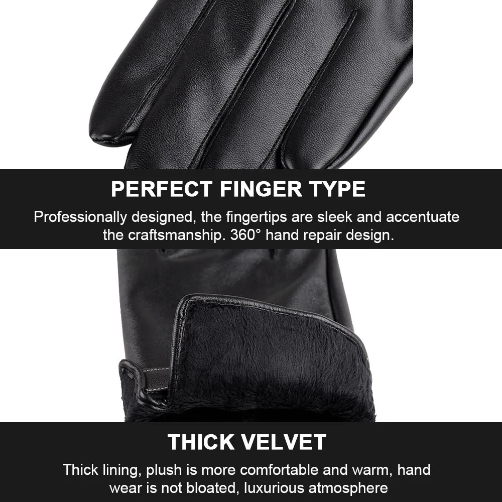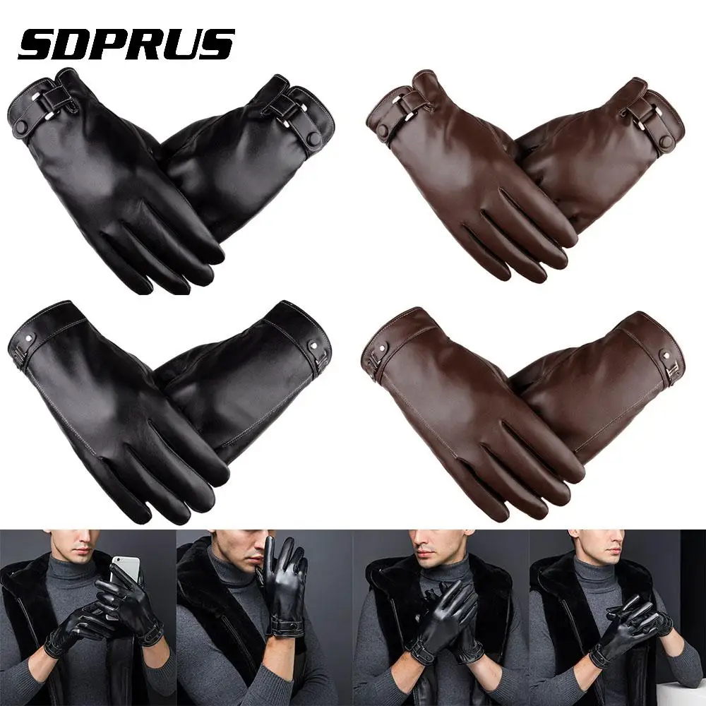 Зимние перчатки для мужчин из искусственной кожи с сенсорным экраном, ветрозащитные утолщенные теплые варежки для вождения, бега, велоспорта, текстовых сообщений, активного отдыха