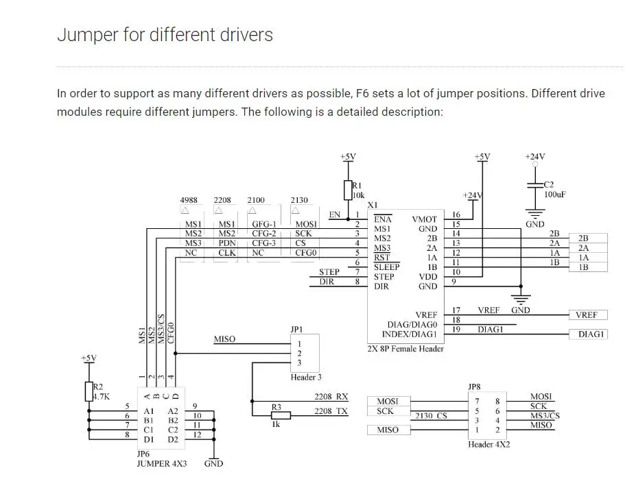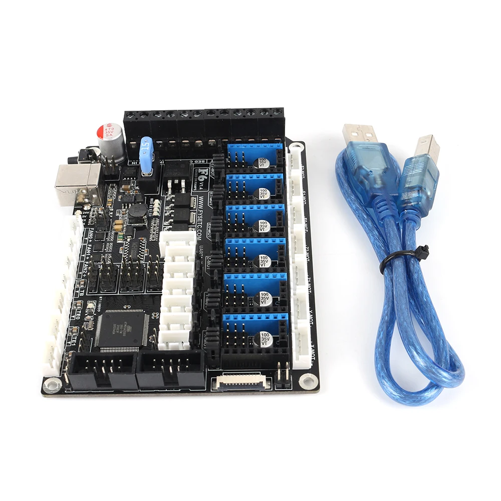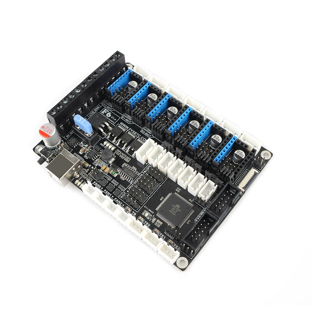Плата FYSETC F6-это многофункциональное электронное решение для 3D-принтера и других устройств с ЧПУ. Он обеспечивает шесть разъемов для драйверов и поддерживает Pololu pin совместимые Шаговые драйверы, особенно модули драйверов TMC. Нет необходимости в полете проводов при использовании TMC2100, TMC2130 для SPI, и доступны их пин-конfiger функции.