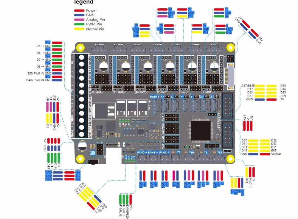 • 10x PWM способными мощность mosfet выходы (1 для очаг, 3 для жар-конец, 3 для любителей, 3 для RGB светодиодный полосы)