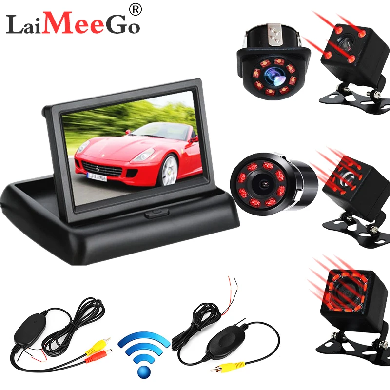 Складной TFT ЖК-монитор для автомобиля, 4,3 дюйма, ИК-камера заднего вида, система парковки для автомобиля