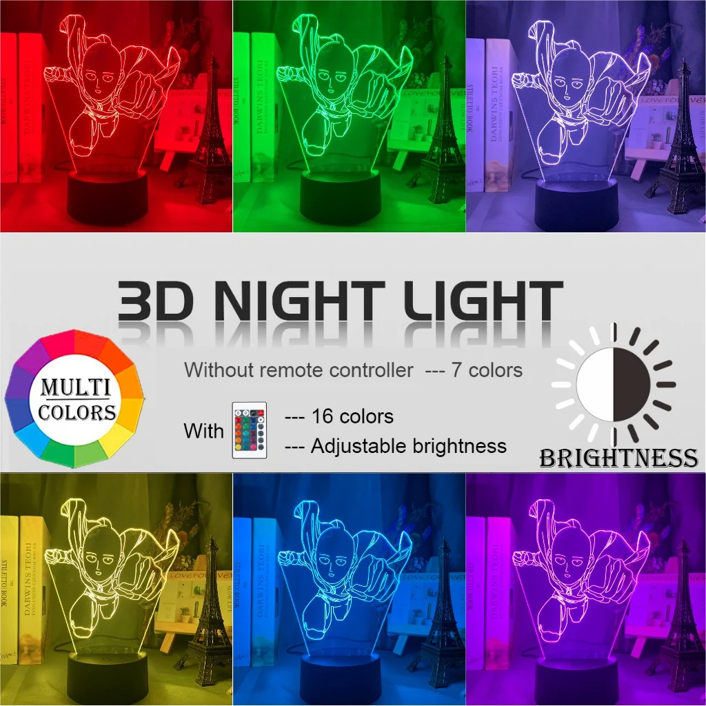 Ночной светильник Saitama, светодиодный светильник в виде фигурки, украшение дома, ночник, декор манги, идеи магазина, настольный 3d светильник