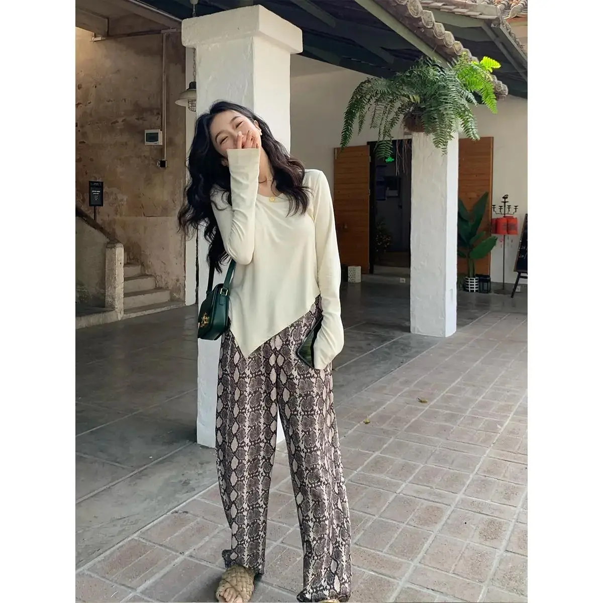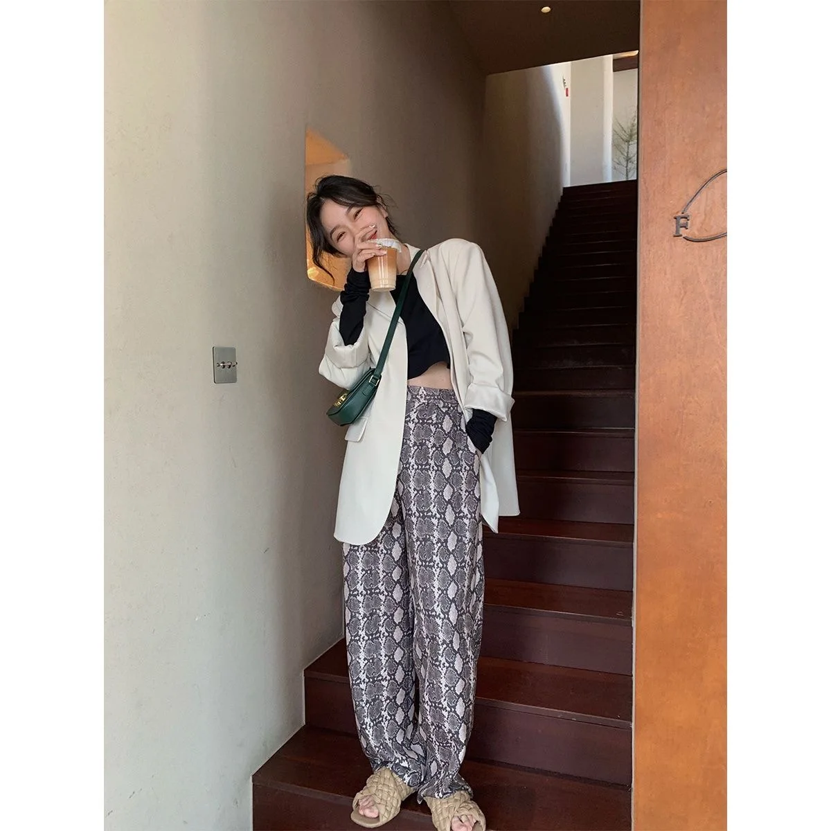 Женские брюки Bella philosophy, серпантинные брюки со змеиным принтом, свободные брюки с высокой талией в стиле Харадзюку