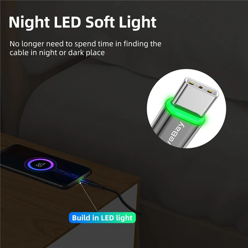 Кабель хороший заряжает быстро, приятная зелёная подсветка когда кабель воткнут в устройство подсветка не яркая товаром доволен!
