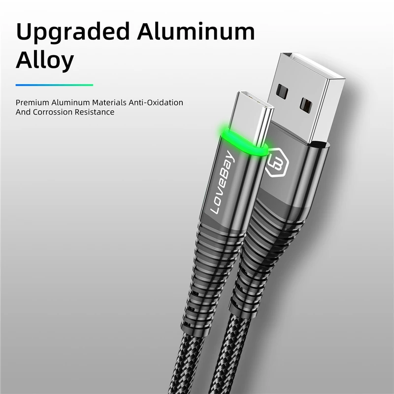 Lovebay LED 3A USB Type C кабель Micro USB Быстрая зарядка 3.0 мобильный телефон зарядный провод C кабель для Xiaomi Samsun Быстрая зарядка