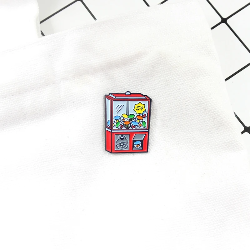 XEDZ игровой автомат, эмалированные булавки, 90s, милый поворотный стержень, кукольный автомат, ТВ торговый автомат, отворот, брошь, Значки для ювелирных изделий, детский подарок