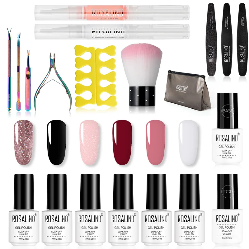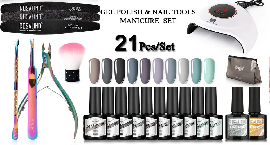 Наборы для ногтей ROSALIND, для маникюра, Комплект гель-лаков для ногтей г., УФ-лампа, светодиодная лампа, для наращивания, Отмачивание, Базовое покрытие, Гель-лак