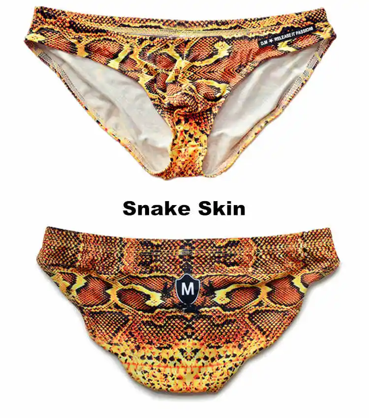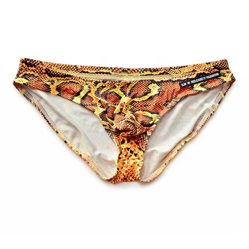 Трусы-брифы мужские из змеиной кожи, пикантное нижнее белье для пла...