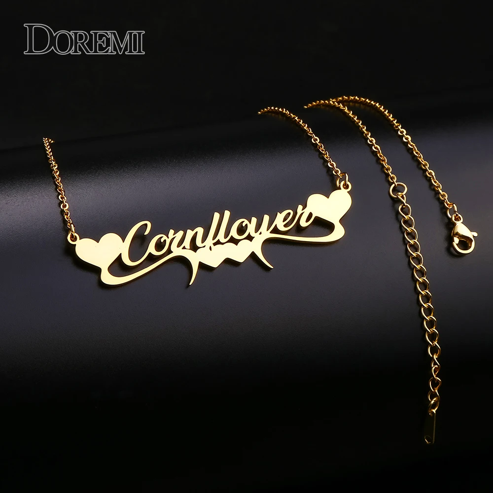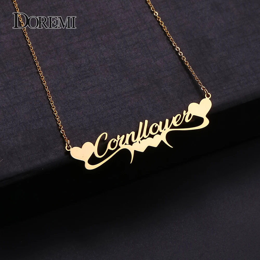 Ожерелья DOREMI из нержавеющей стали с именем на заказ, ожерелья с именем на заказ для женщин, ювелирные изделия с золотым заполненным сердцем, эффектные искусственные