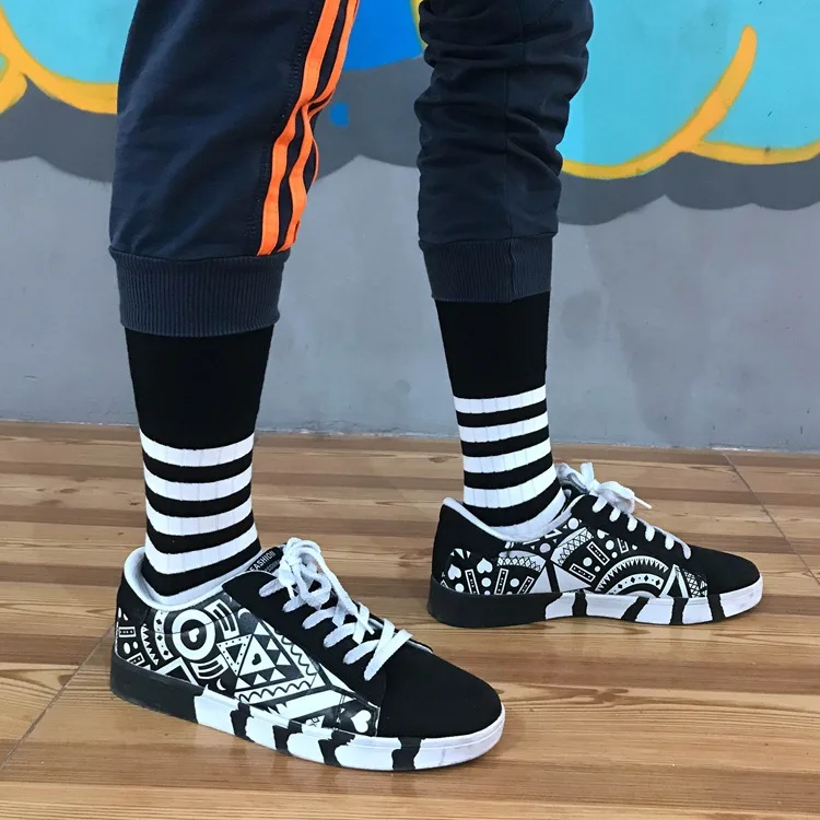 Танцевальная обувь средней высоты для взрослых; Обувь до середины икры с круглым вырезом с принтом зебры эффектом деграде (переход от темного к полоски пчелы Тигр простые хлопковые носки в полоску пряжа чулки вязаные черные оранжевый контраст красного и зеленого цвета